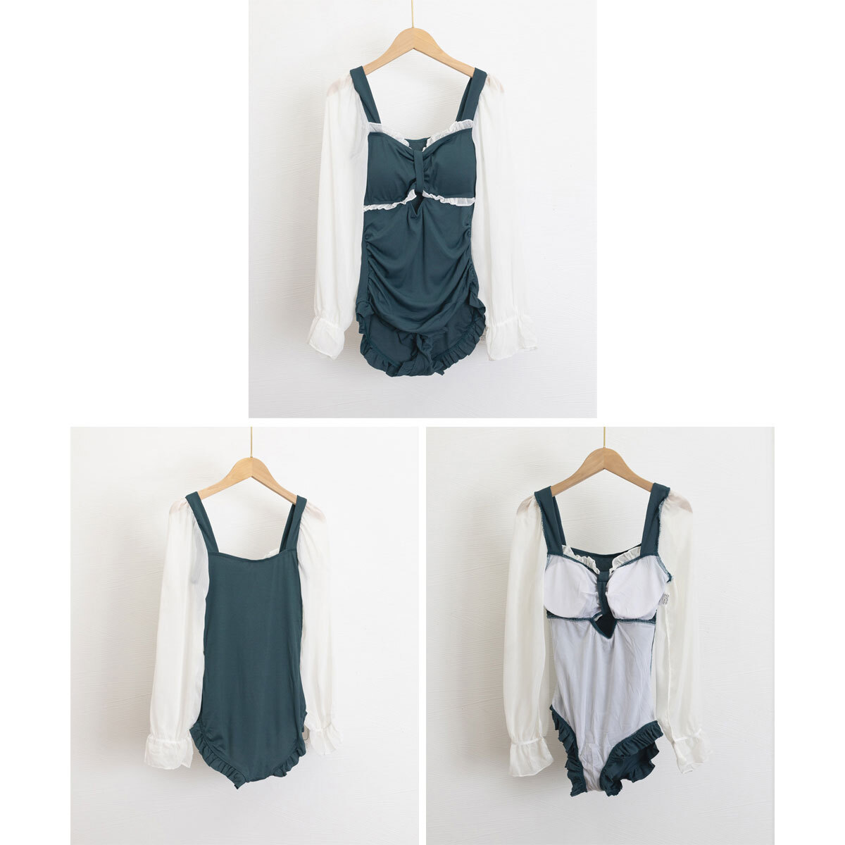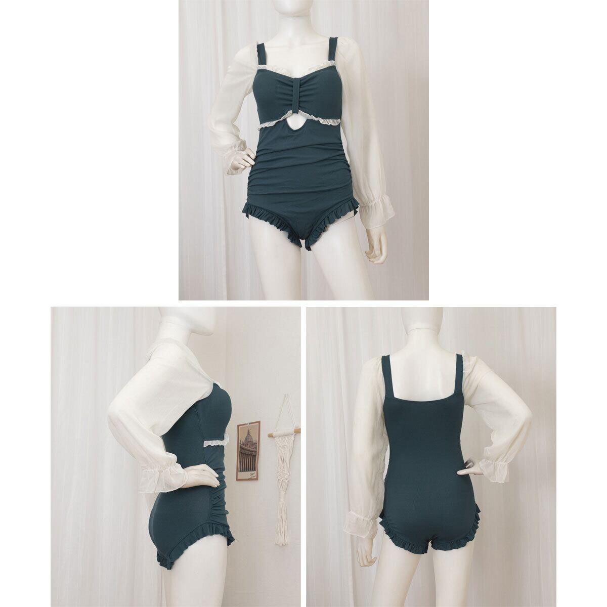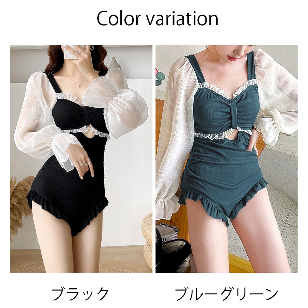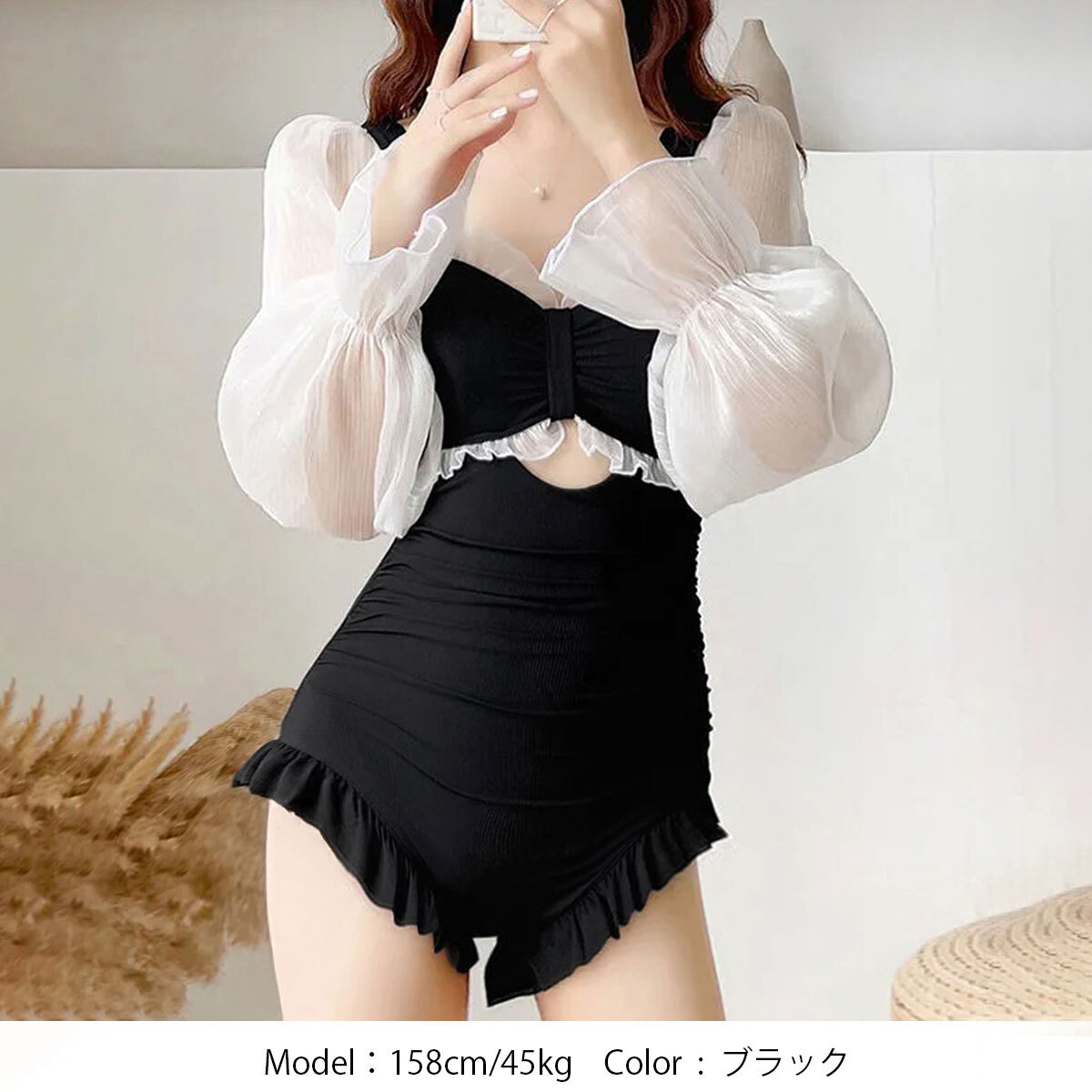 大人っぽさと甘さのバランスが絶妙で、シアーな素材とレトロな雰囲気漂うパフスリーブが、大人可愛いワンピース水着です。
