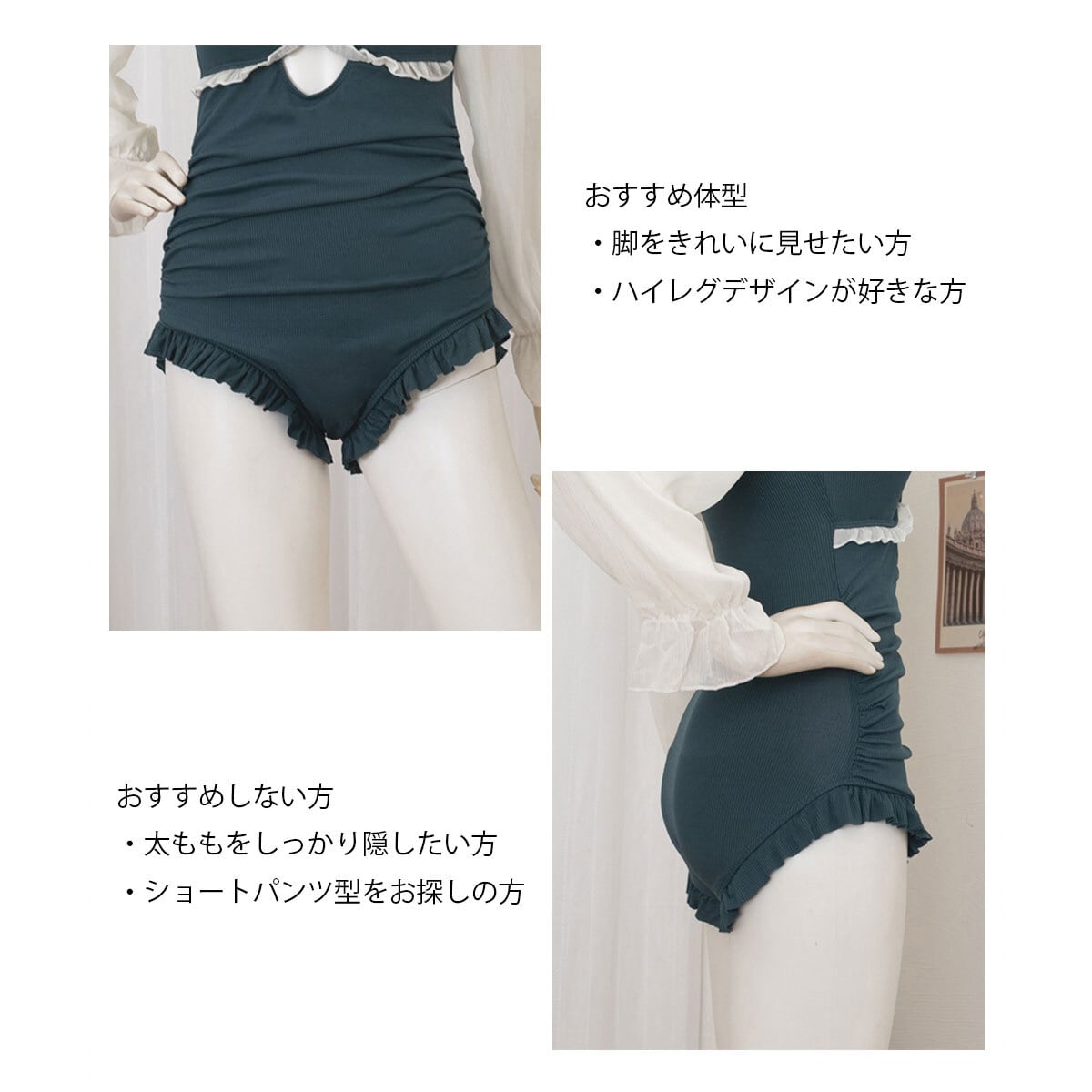 韓国のトレンドを取り入れたバイカラーのデザインが、お洒落な印象を格上げし、夏のビーチやプールで輝くこと間違いなしの1着です。