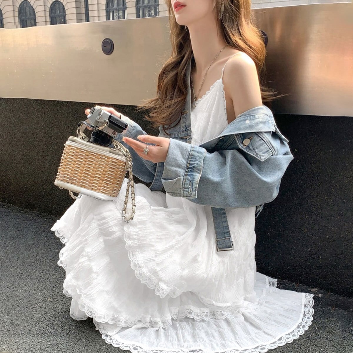 ◇レースとティアードデザインが大人可愛いキャミワンピース。