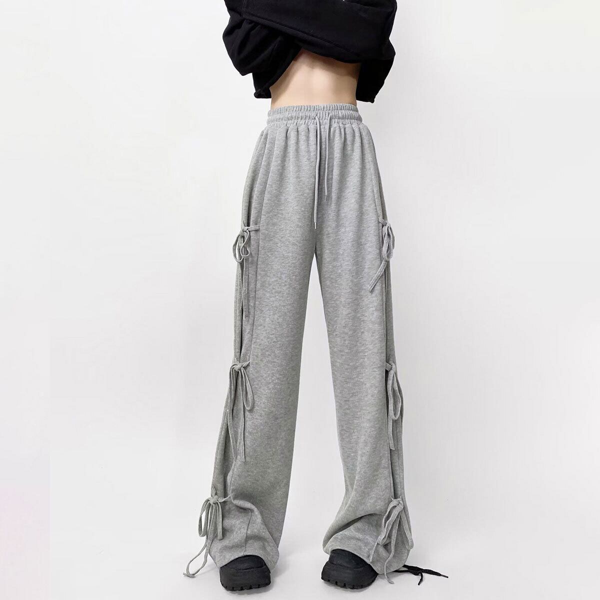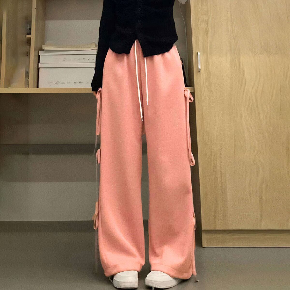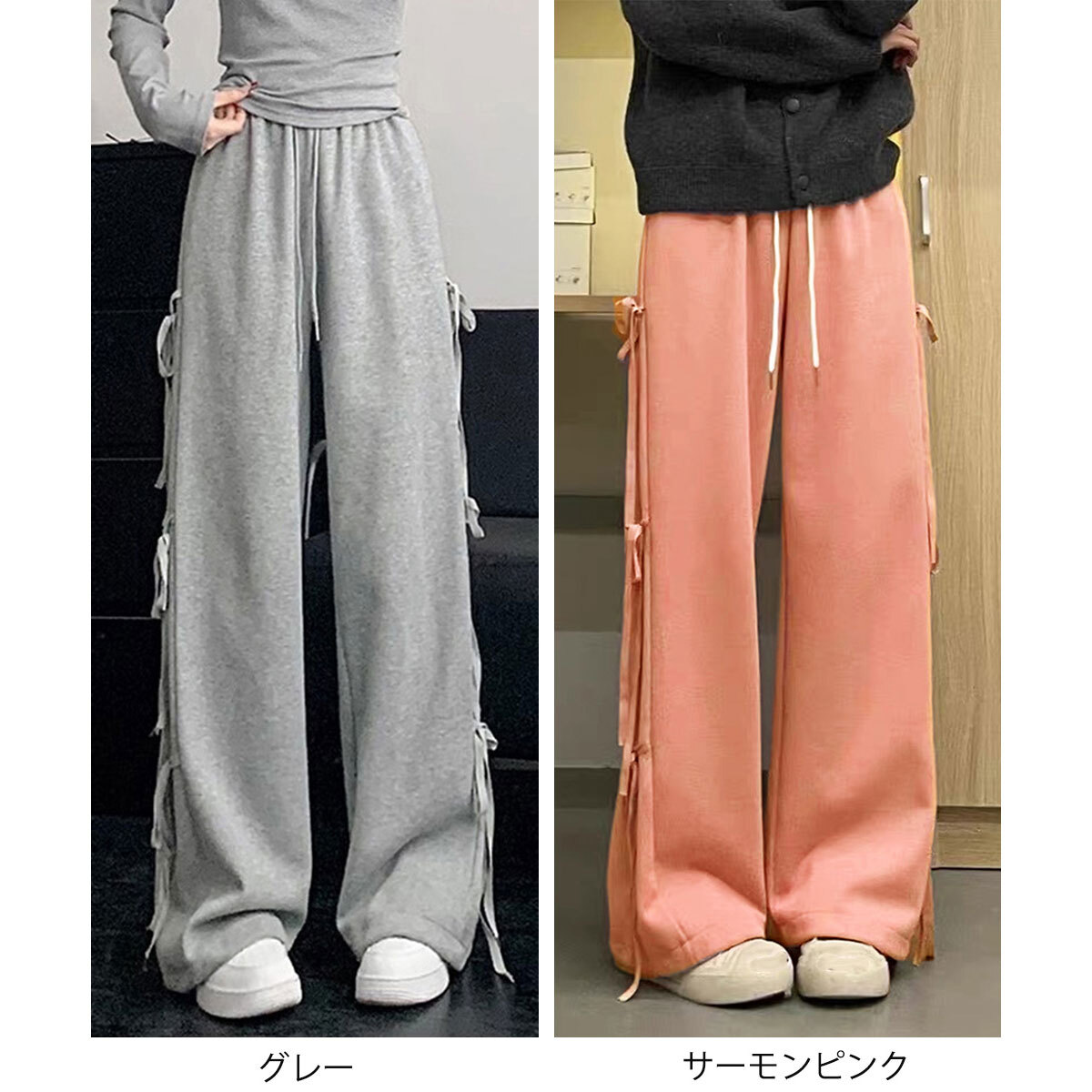 スウェット ワイドパンツ レディース サイドリボン 韓国 おしゃれ 大人 かわいい カジュアル ゆったり ウエストゴム リラックス 大人可愛い 大人女子