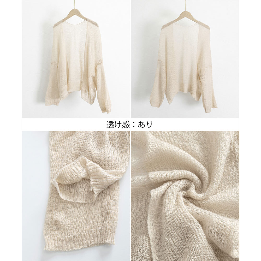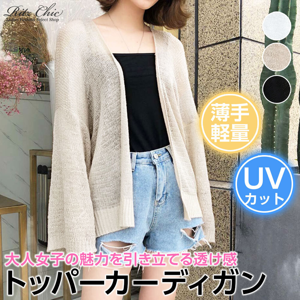 トッパー カーディガン レディース 春夏 羽織り 韓国 おしゃれ 大人 きれいめ カジュアル ボリューム袖 ゆったり 透け感 UV対策 冷房対策 オフィス ビジネス ニットカーディガン 大人可愛い 大人女子