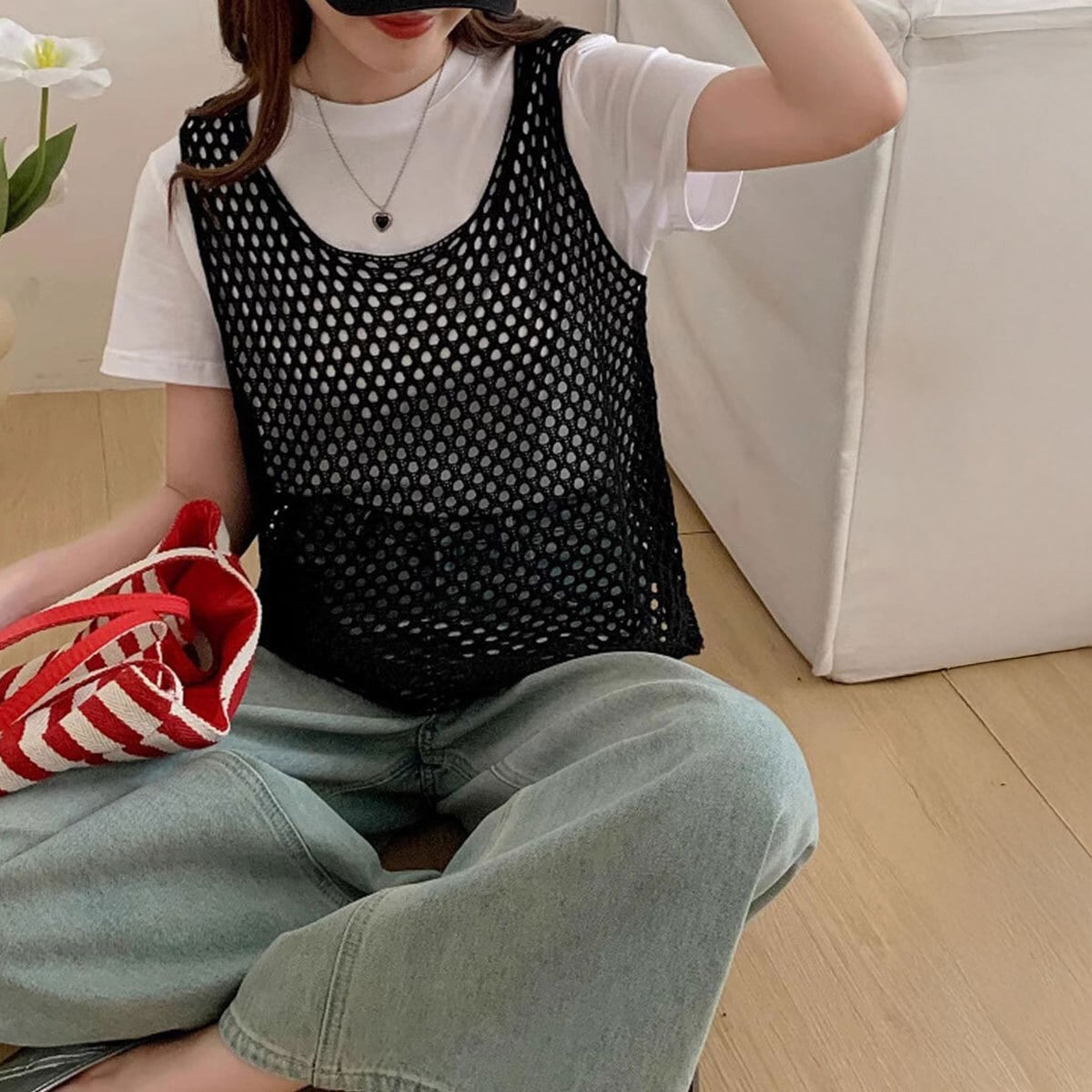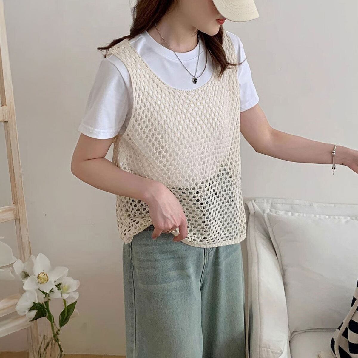 透かし編み メッシュ ニット レディース 春夏 韓国 透け感 重ね着 ジレ ベスト おしゃれ 大人 きれいめ かわいい 薄手 レイヤード 通気性 カジュアル 大人可愛い 大人女子