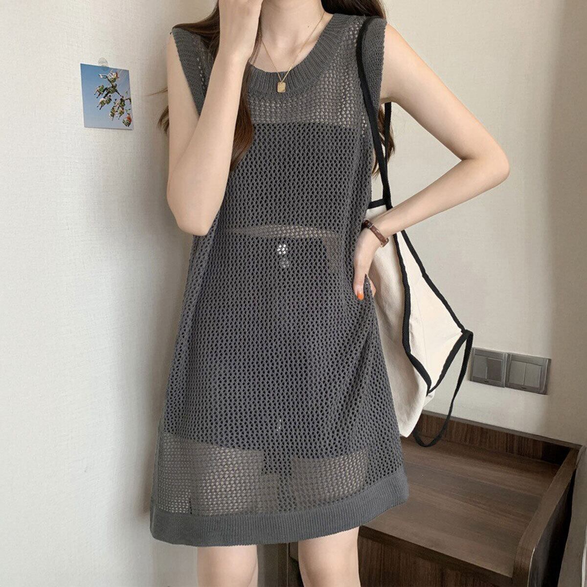 メッシュ ニット チュニック レディース 春夏 韓国 透かし編み 透け感 重ね着 ワンピース きれいめ おしゃれ 大人 かわいい 薄手 レイヤード 通気性 スリット チュニックワンピース 大人可愛い 大人女子