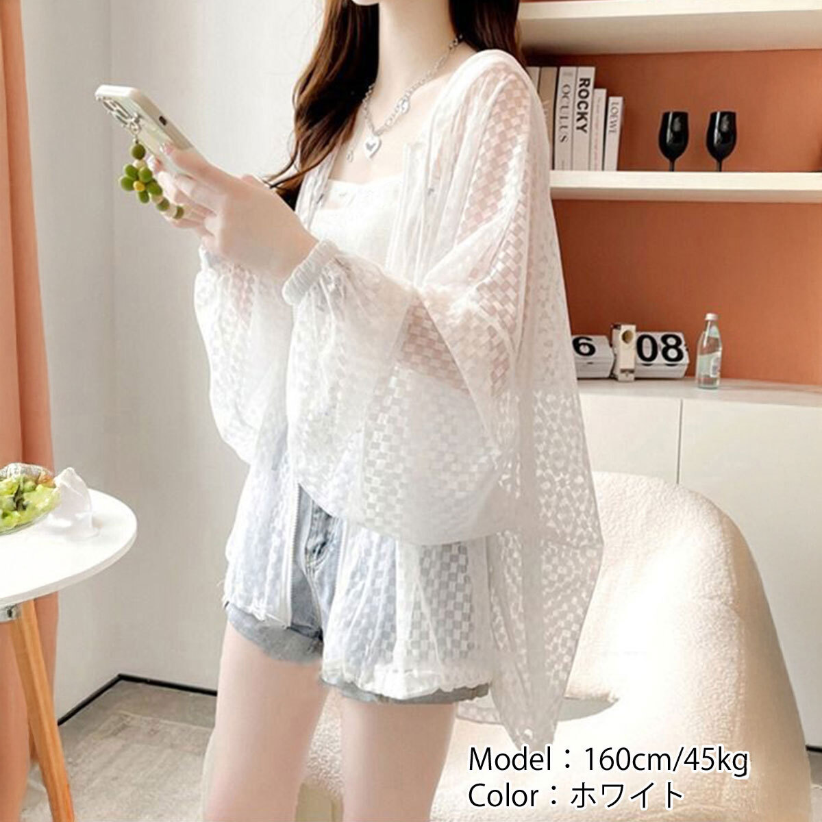 軽量な素材でUV対策や日焼け防止にも役立ち、外出時はもちろん、室内での冷房対策にもぴったりです。
