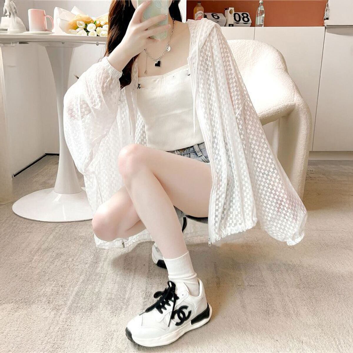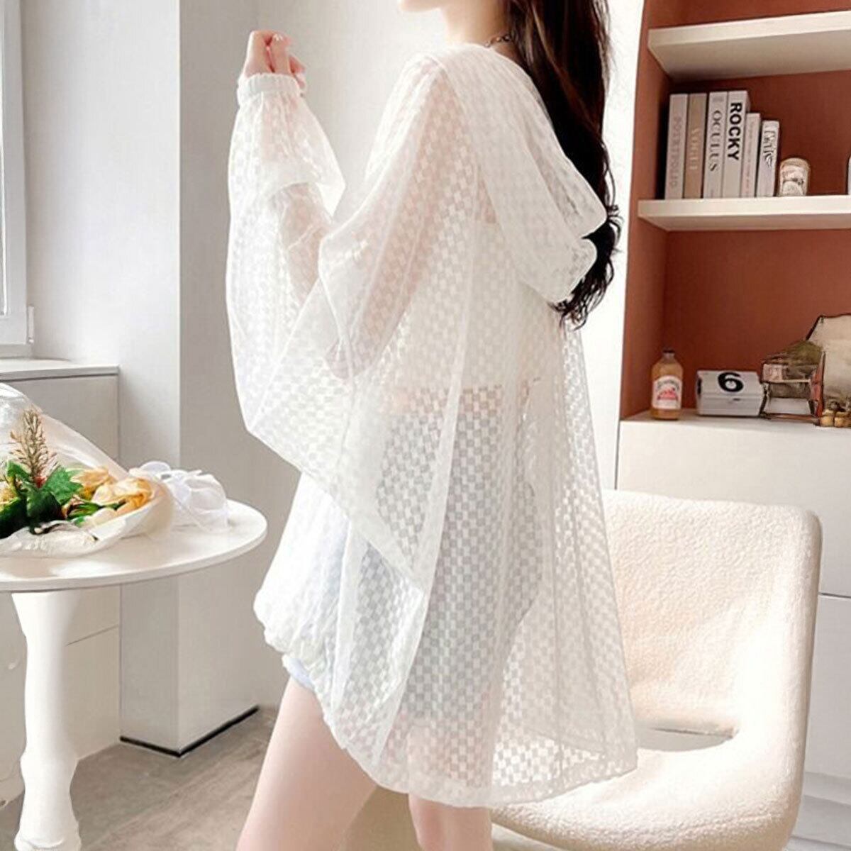 ジップアップ パーカー 透け感 レディース 韓国 シアー 春 夏 大人 カジュアル おしゃれ ライトアウター UV対策 日焼け防止 ゆったり オーバーサイズ きれいめ 体型カバー 羽織り 大人可愛い 大人女子