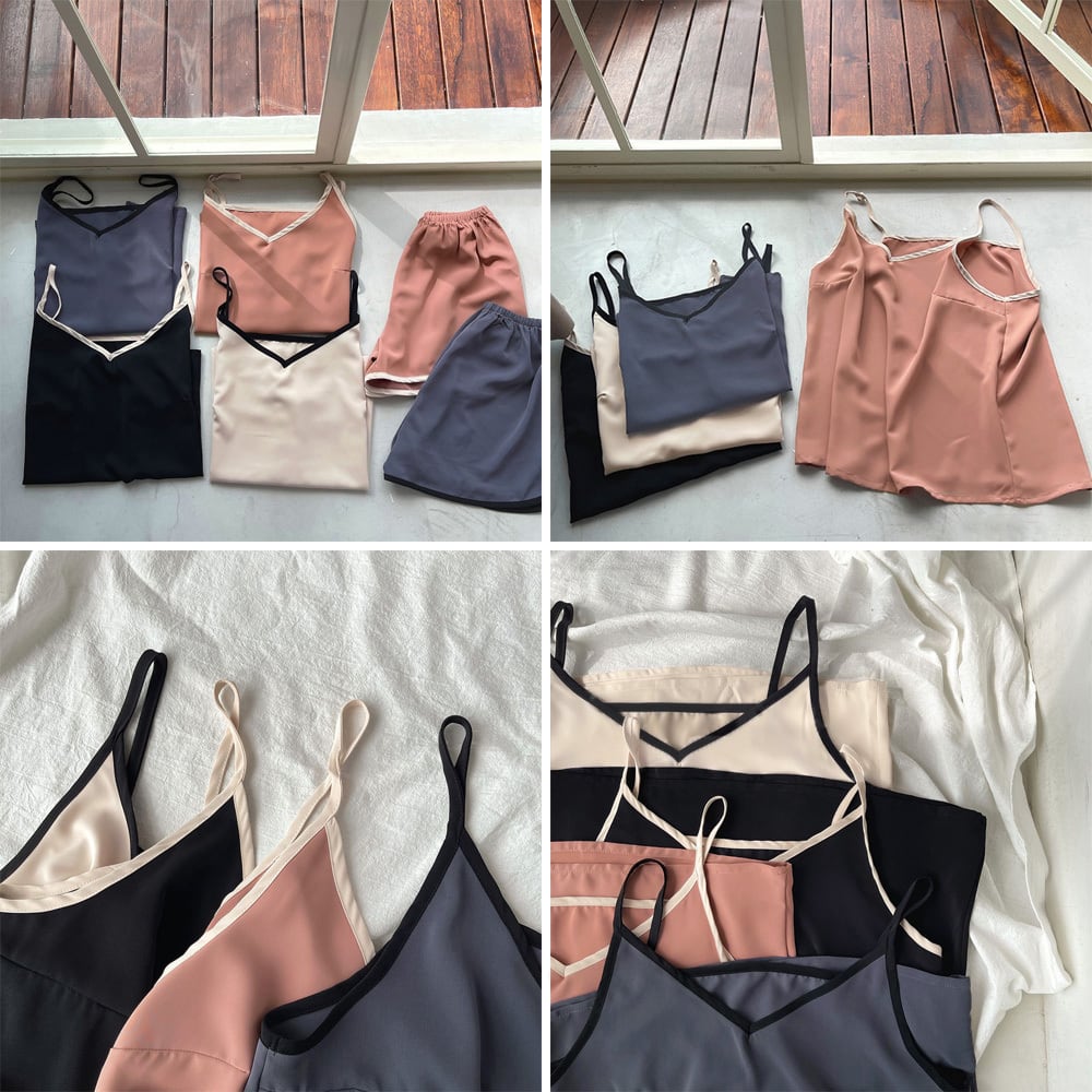◇キャミソールとショートパンツのルームウェアセットアップ。