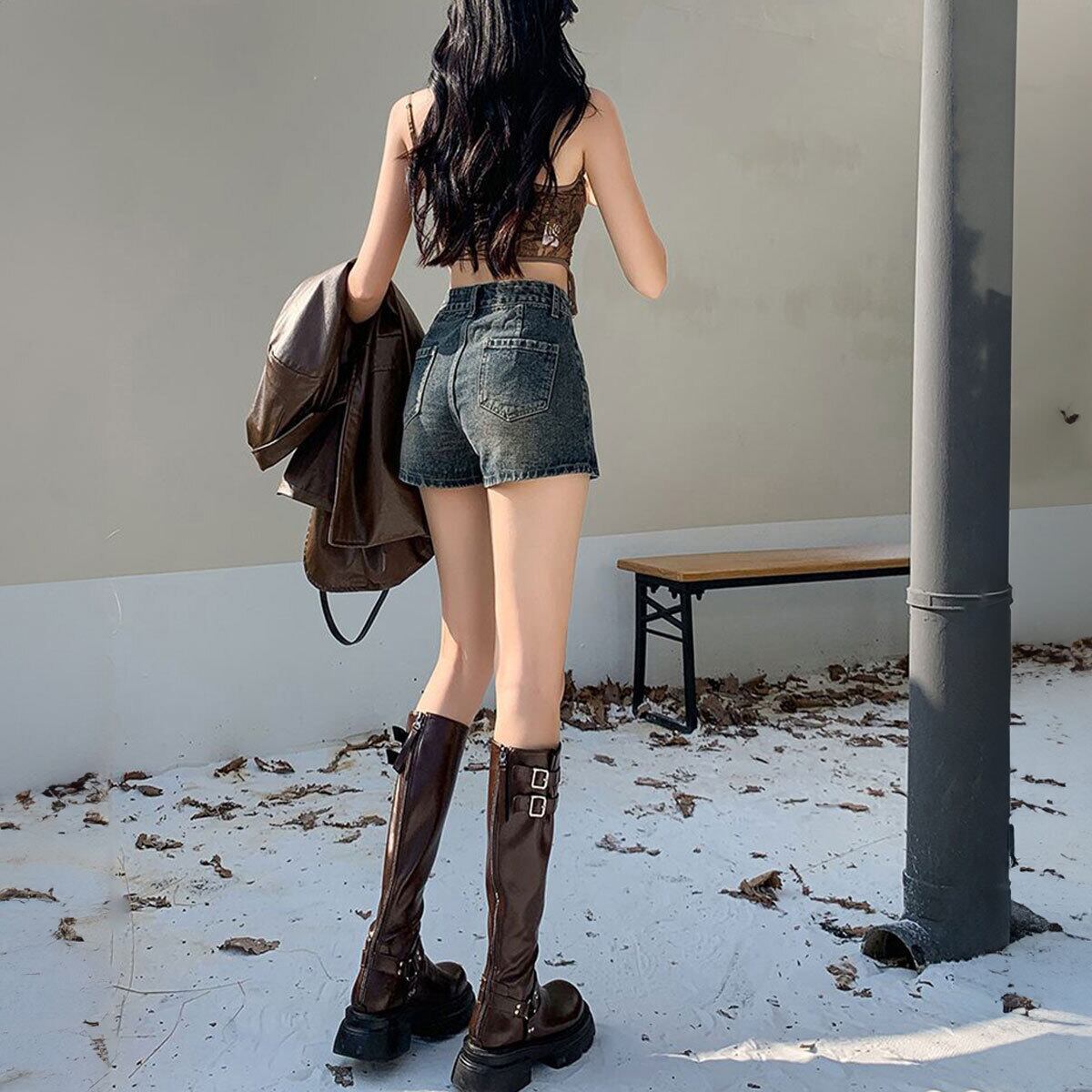 スカパン デニム ショートパンツ レディース 韓国 キュロット 大人 カジュアル おしゃれ ストリート系 原宿系 ハイウエスト 美脚 脚長 大人可愛い 大人女子