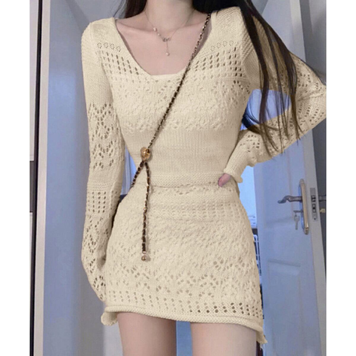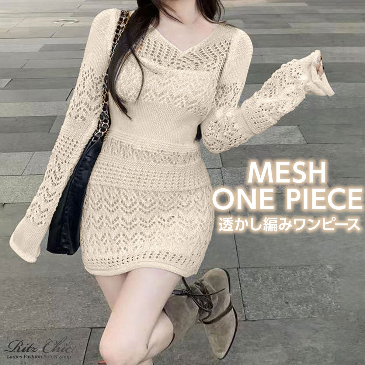 メッシュ ニット ミニワンピース レディース 春夏 韓国 透かし編み ワンピ おしゃれ きれいめ 大人 かわいいい 透け感 ガーリー フェミニン フィット感 伸縮性 大人可愛い 大人女子