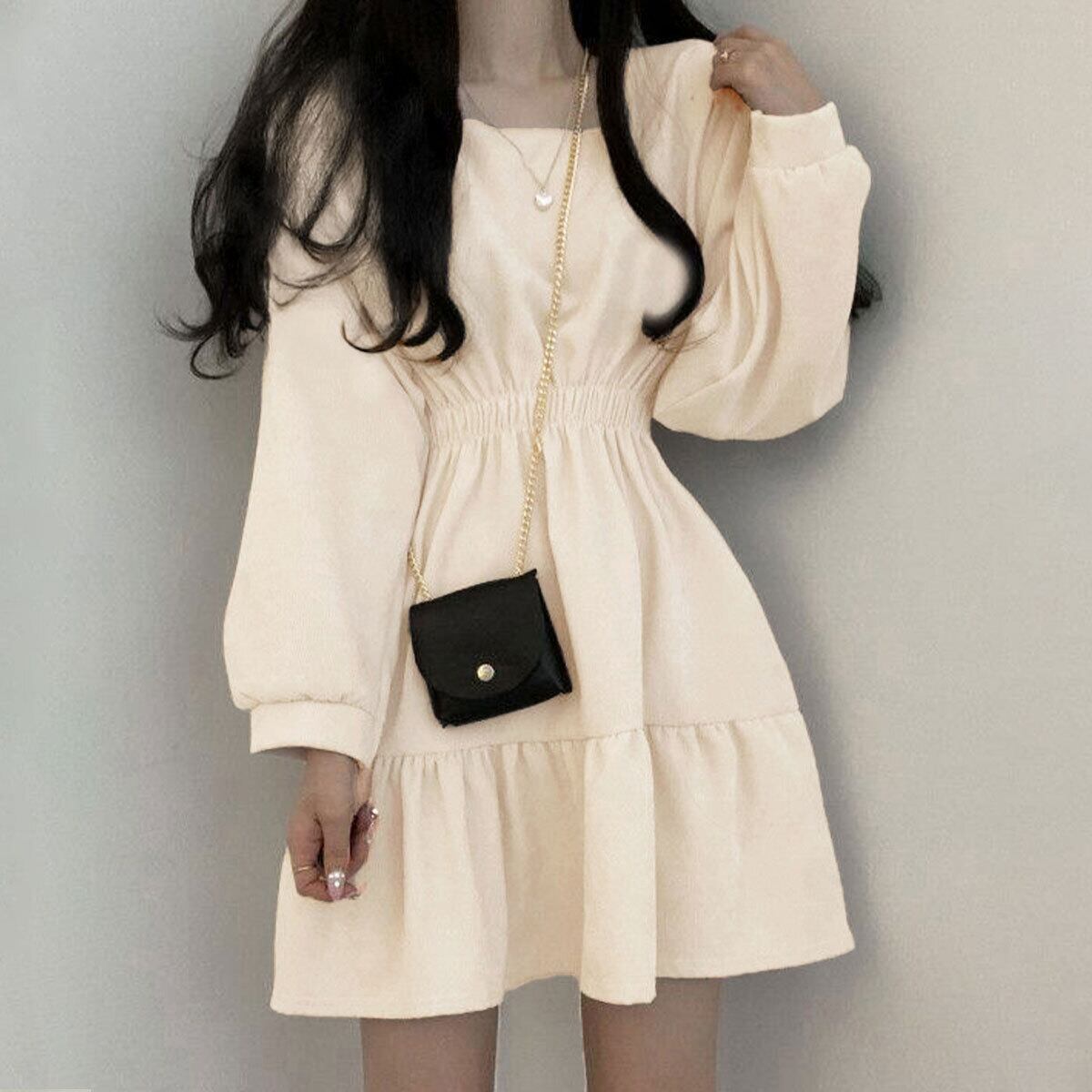 ミニワンピース ティアード レディース 春秋 韓国 ワンピース きれいめ 大人 かわいい レトロ ガーリー おしゃれ ハイウエスト Aライン 薄手 ゆったり ウエストマーク 大人可愛い 大人女子