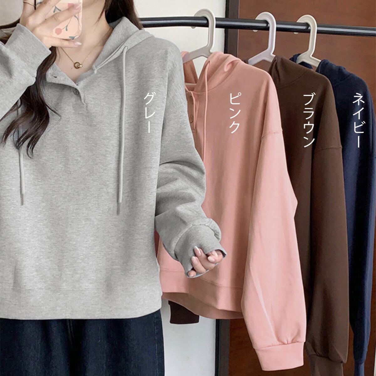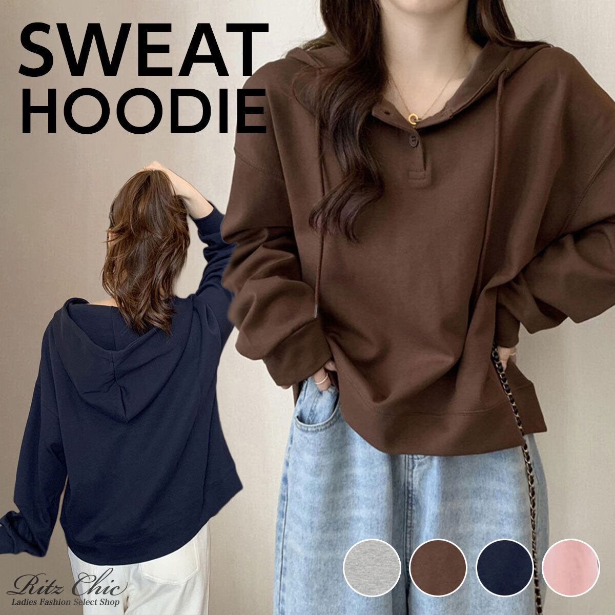 スウェット パーカー フード付き レディース 韓国 春 秋 トップス ストリート 大人 カジュアル おしゃれ ゆったり ドロップショルダー スポーツ ジョギング ウォーキング 薄手 大人可愛い 大人女子