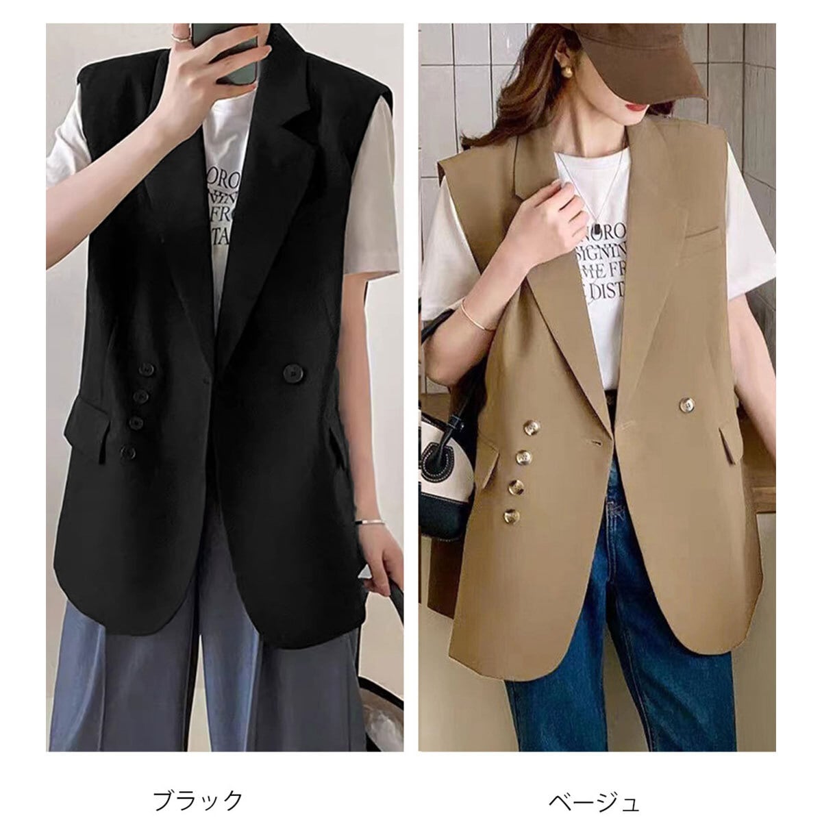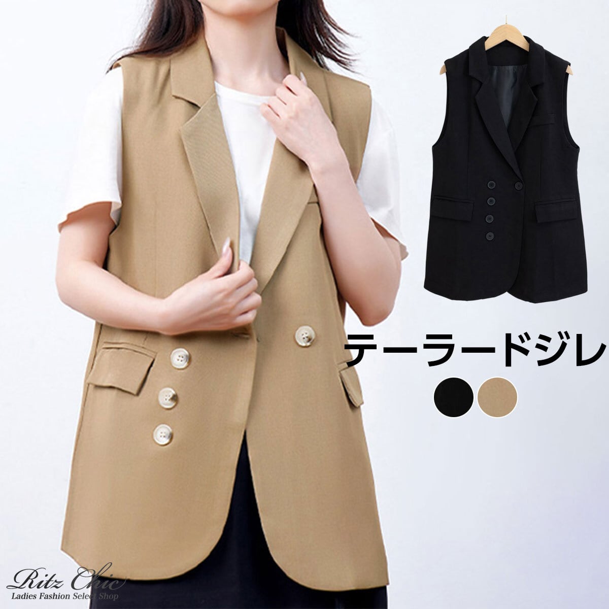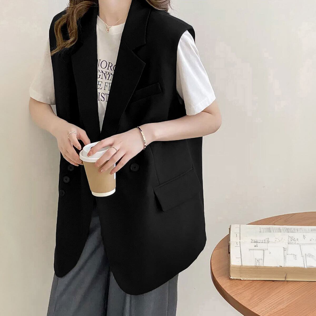 ベスト テーラード ジレ レディース 春 夏 秋 韓国 ノースリーブ ジャケット 大人 カジュアル きれいめ シンプル 通勤 ビジネス オフィス フォーマル 体型カバー ライトアウター 大人可愛い 大人女子