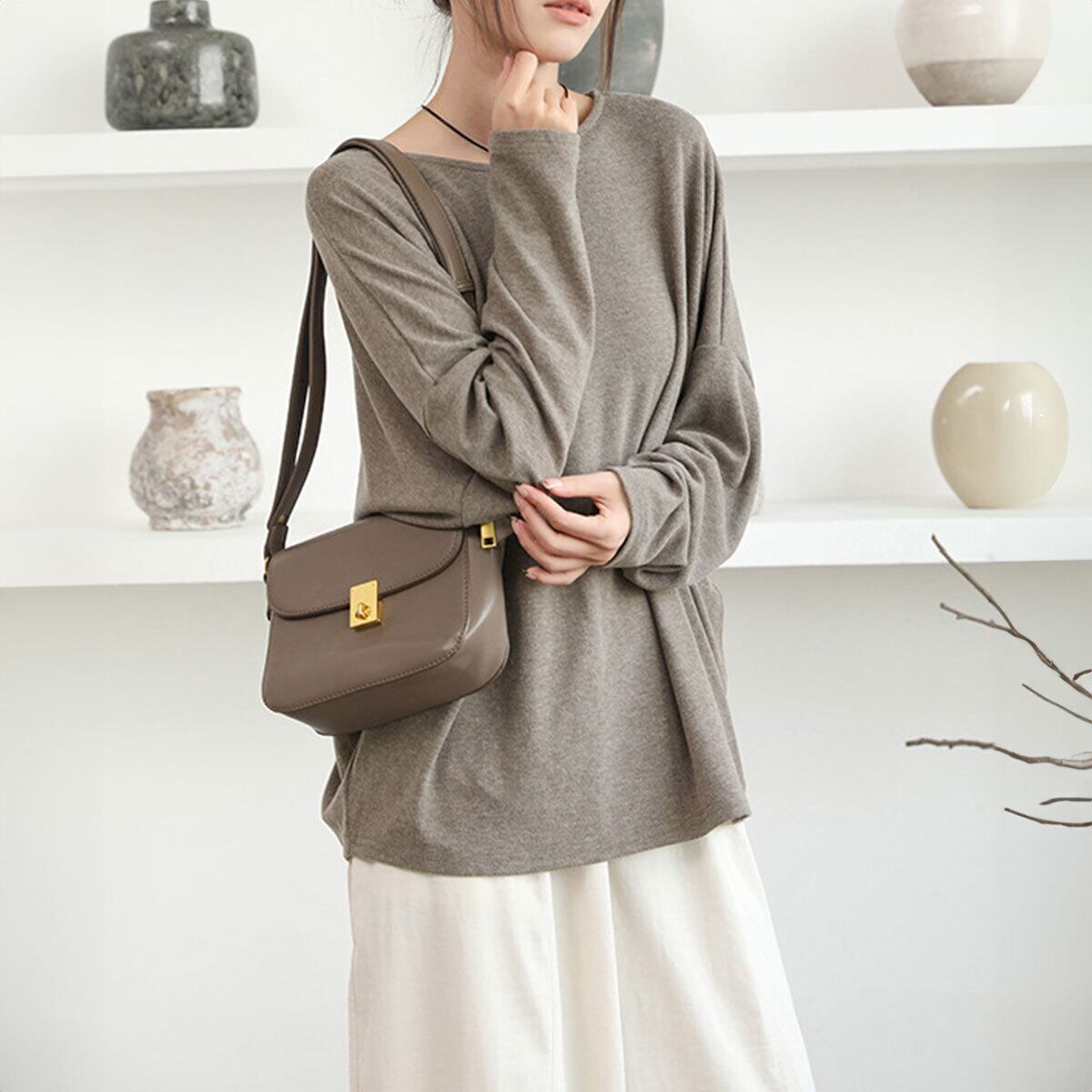 シンプルな無地素材で着回し力にも優れ、ワイドパンツやデニムと合わせた大人カジュアルなスタイルから、ロングスカートと合わせた女性らしいきれいめなスタイルまで、幅広いコーディネートでお洒落を楽しめます。