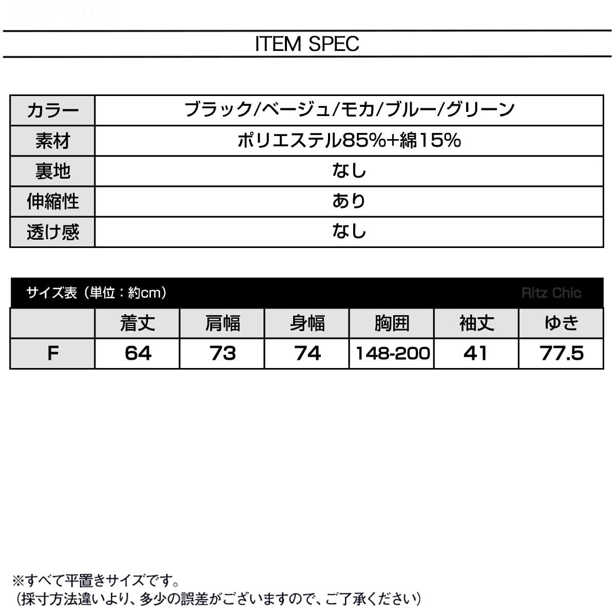 (採寸方法違いより、多少の誤差がございますので、ご了承ください)