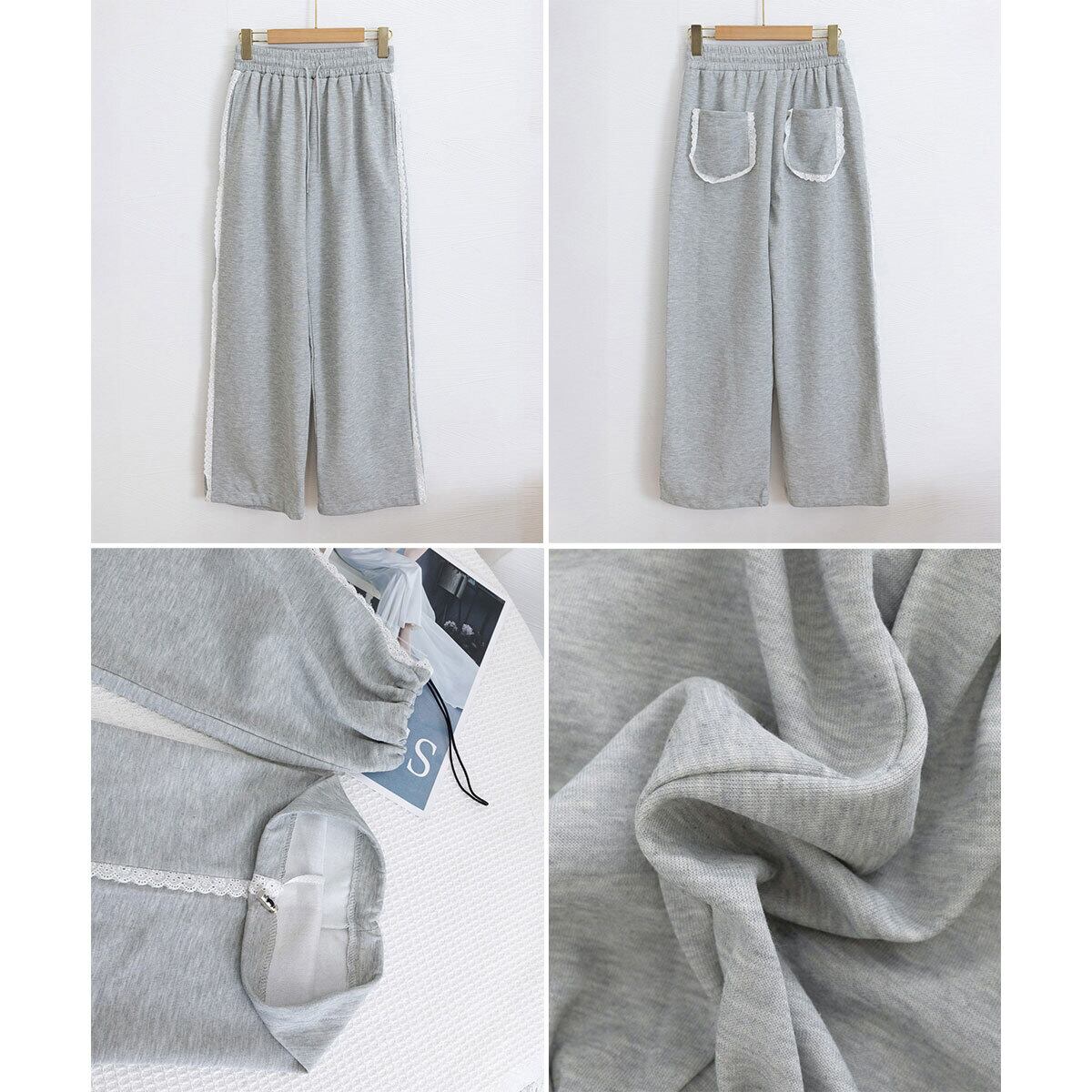 サイドにあしらったホワイトレースが、スポーティーな印象にフェミニンなアクセントをプラスし、さりげない甘さを演出してくれるスウェットパンツです。