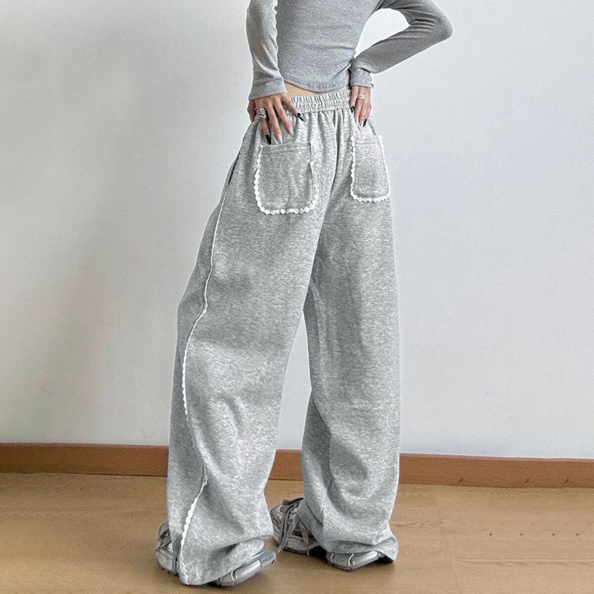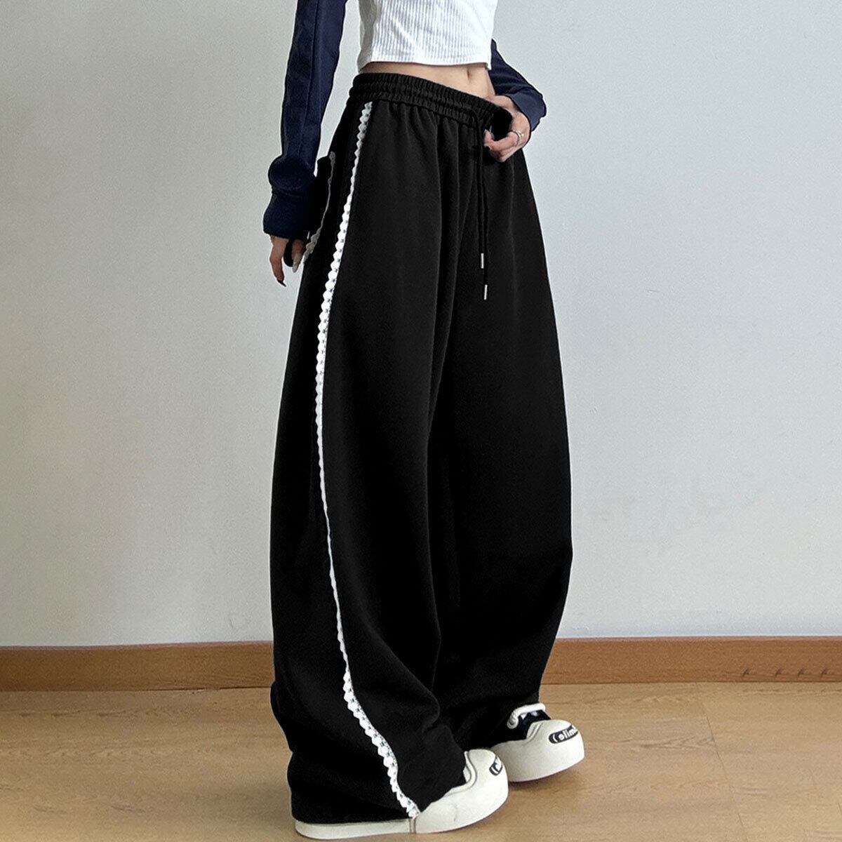 ワイドパンツ スウェット レディース 韓国 サイドレース ストリート ラインパンツ ゆったり おしゃれ 大人 カジュアル リラックス イージーパンツ 体型カバー ウエストゴム 大人可愛い 大人女子