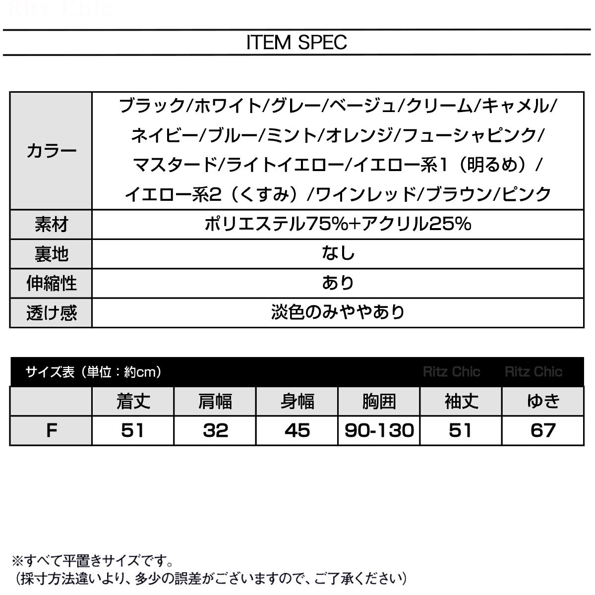 (採寸方法違いより、多少の誤差がございますので、ご了承ください)