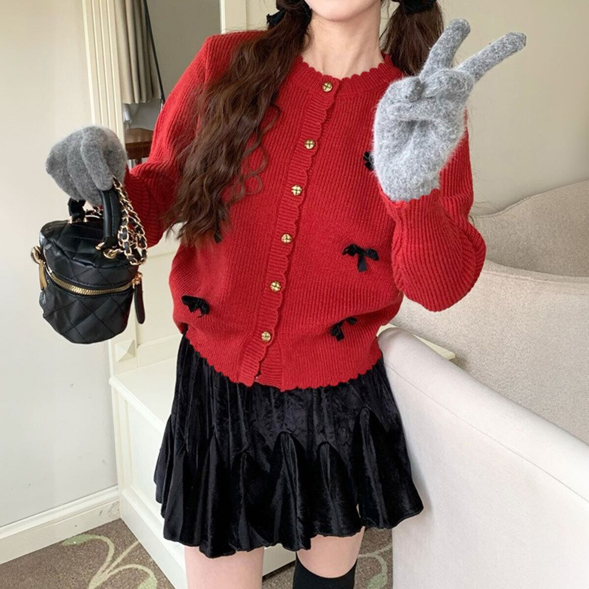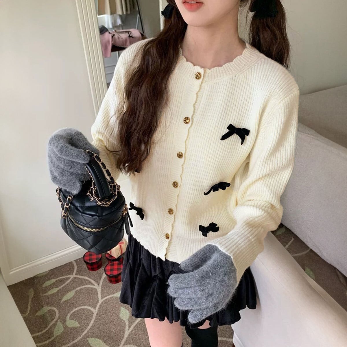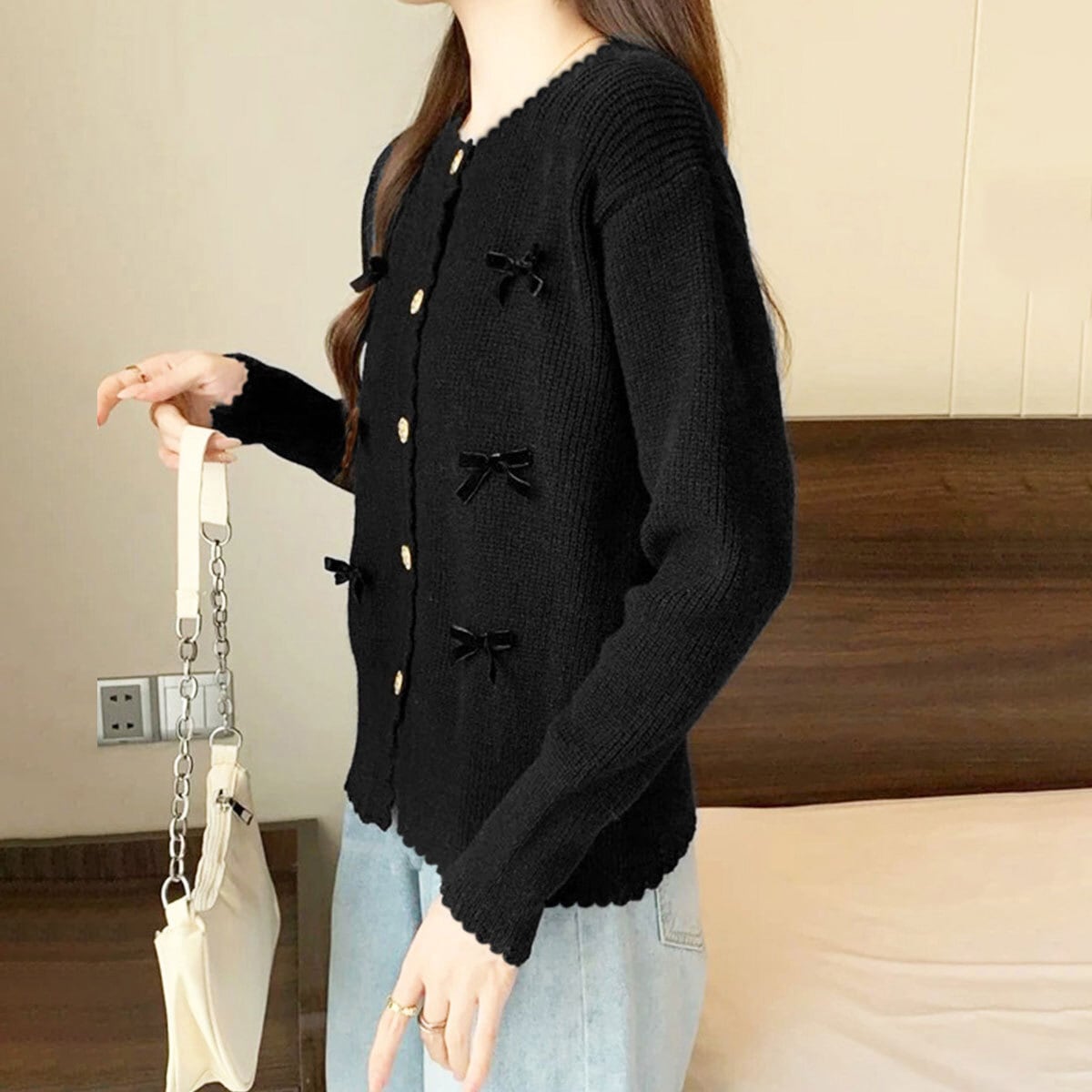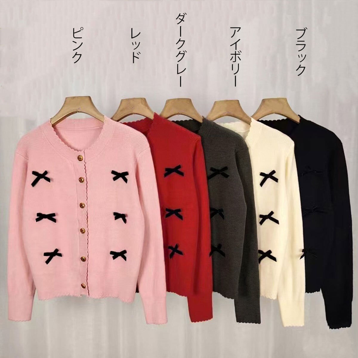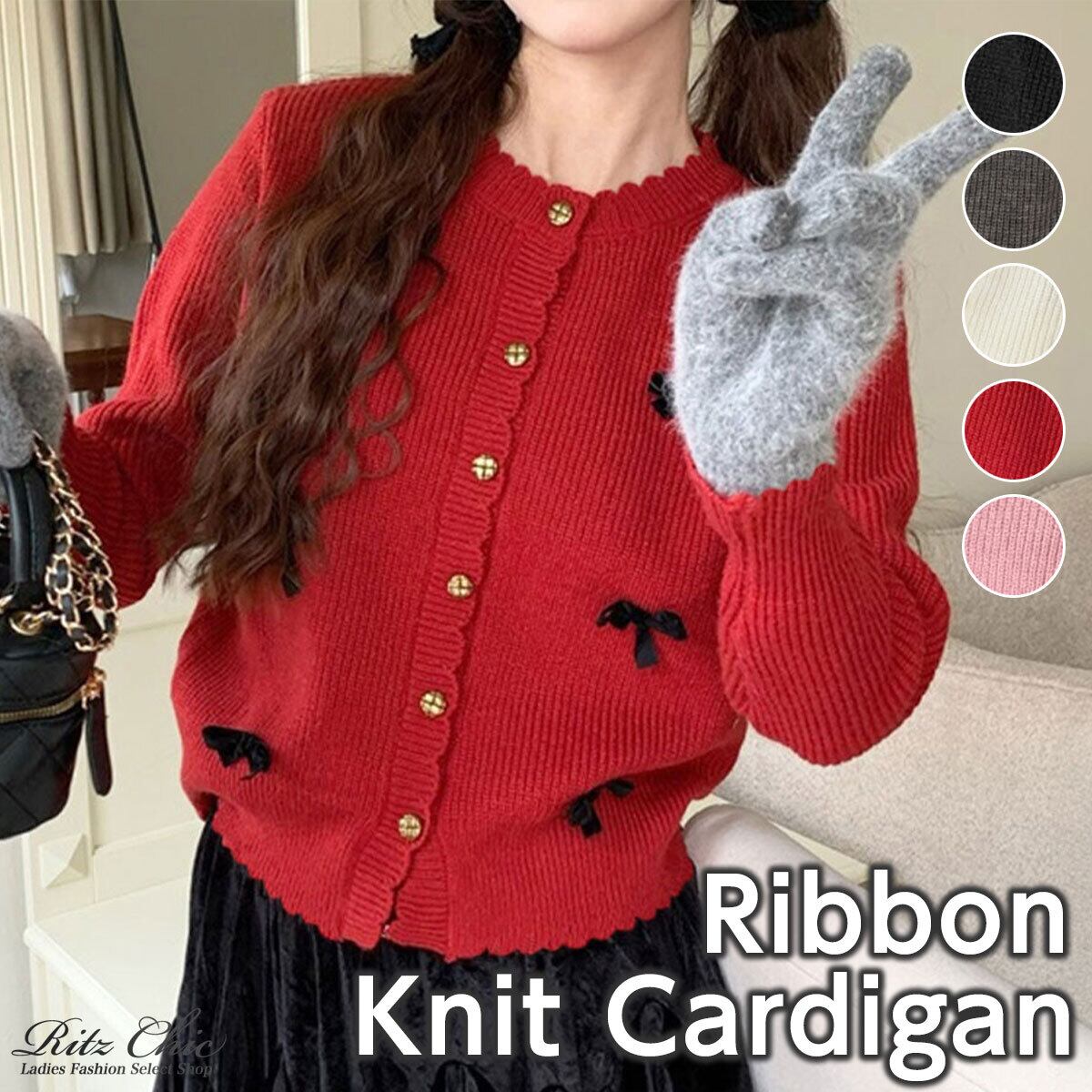 リボン ニット カーディガン レディース 秋冬 韓国 大人 かわいい おしゃれ きれいめ シンプル 羽織り アウター ゆったり 防寒 保温 フェミニン 暖かい 大人可愛い 大人女子