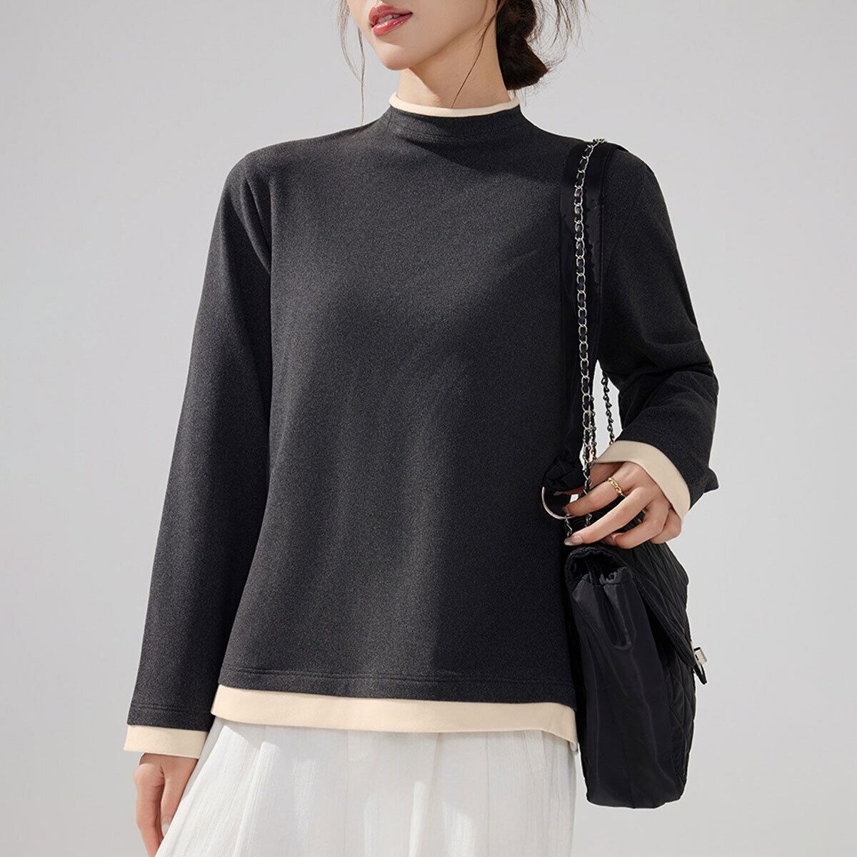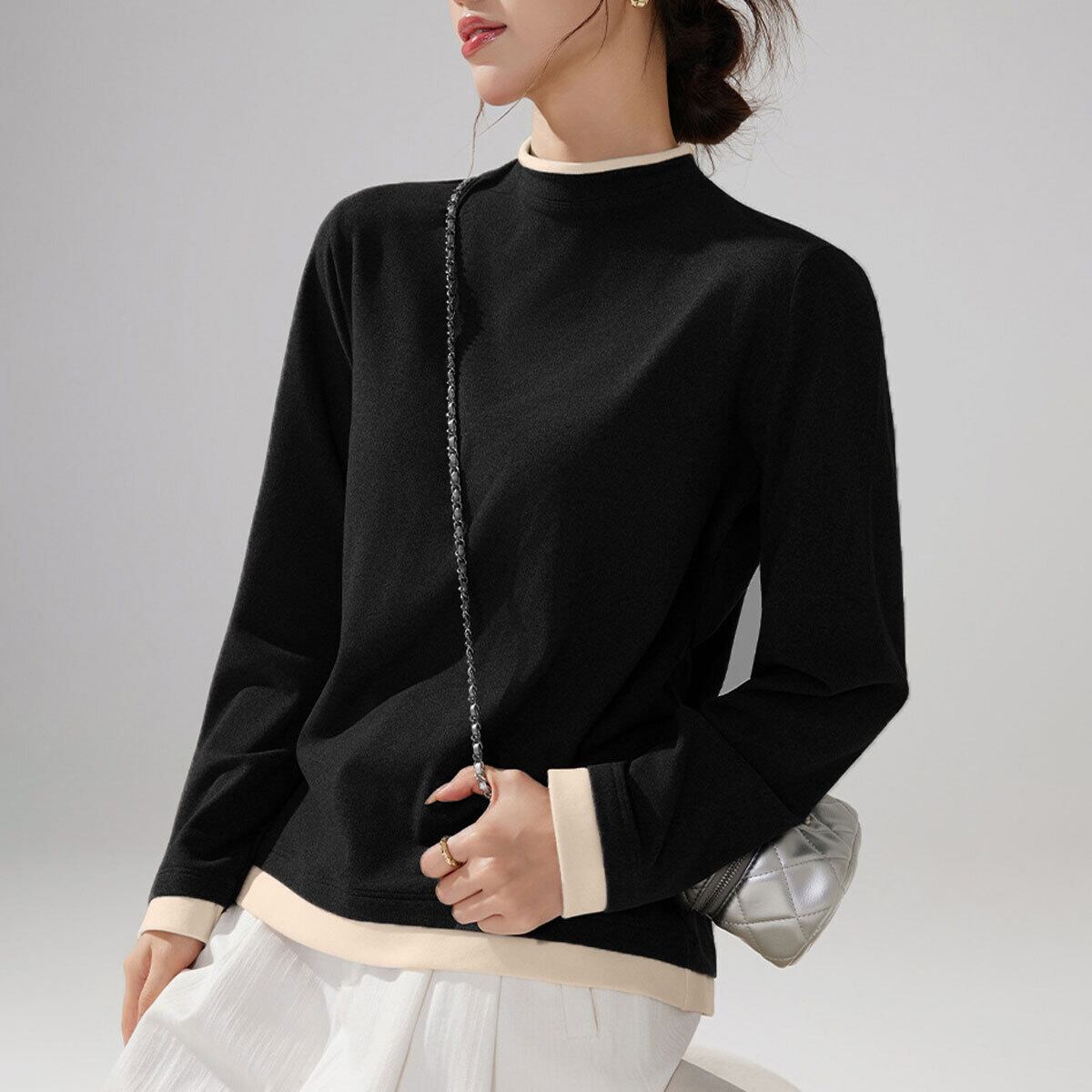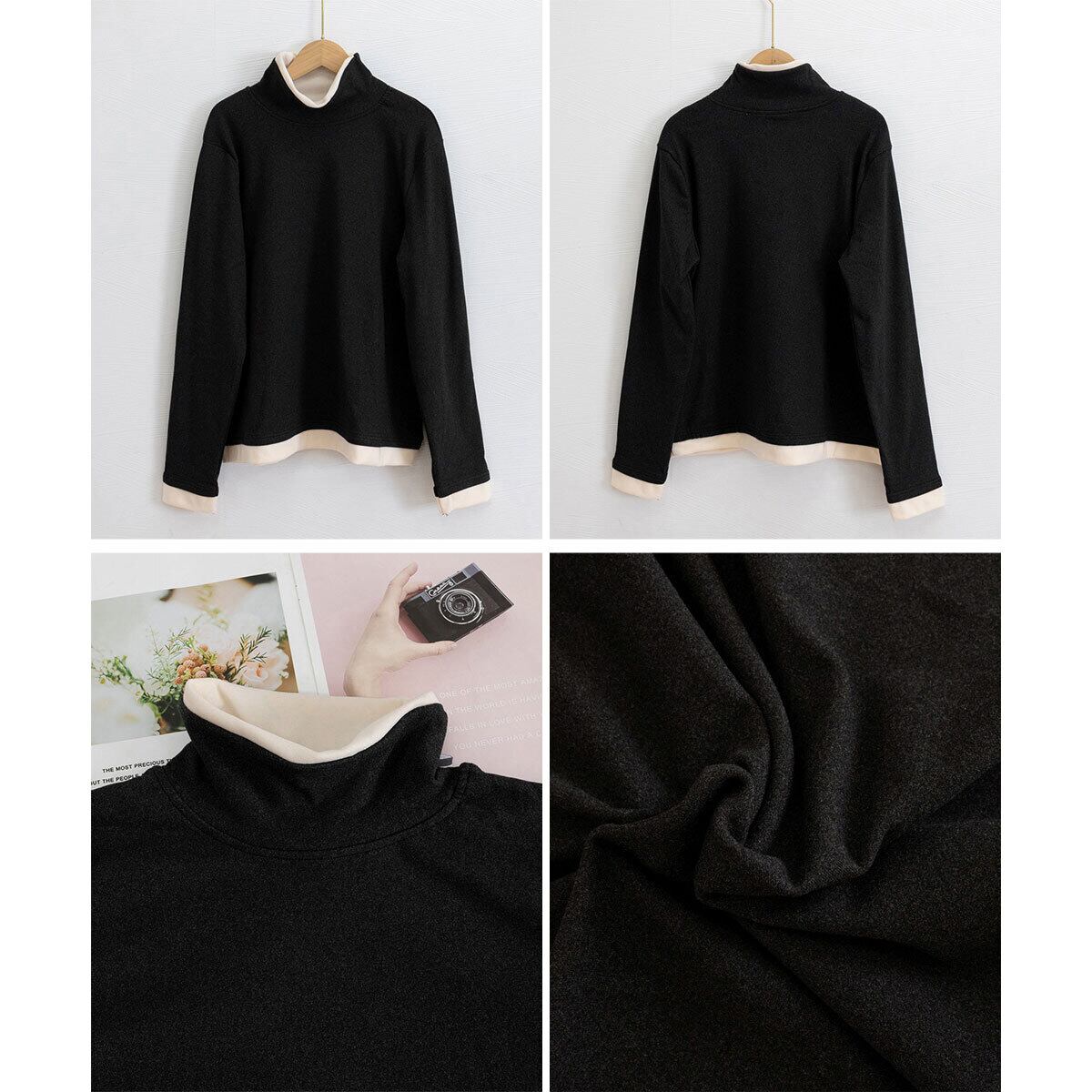 ◇配色デザインがポイントのシンプルなハイネック長袖トップス。