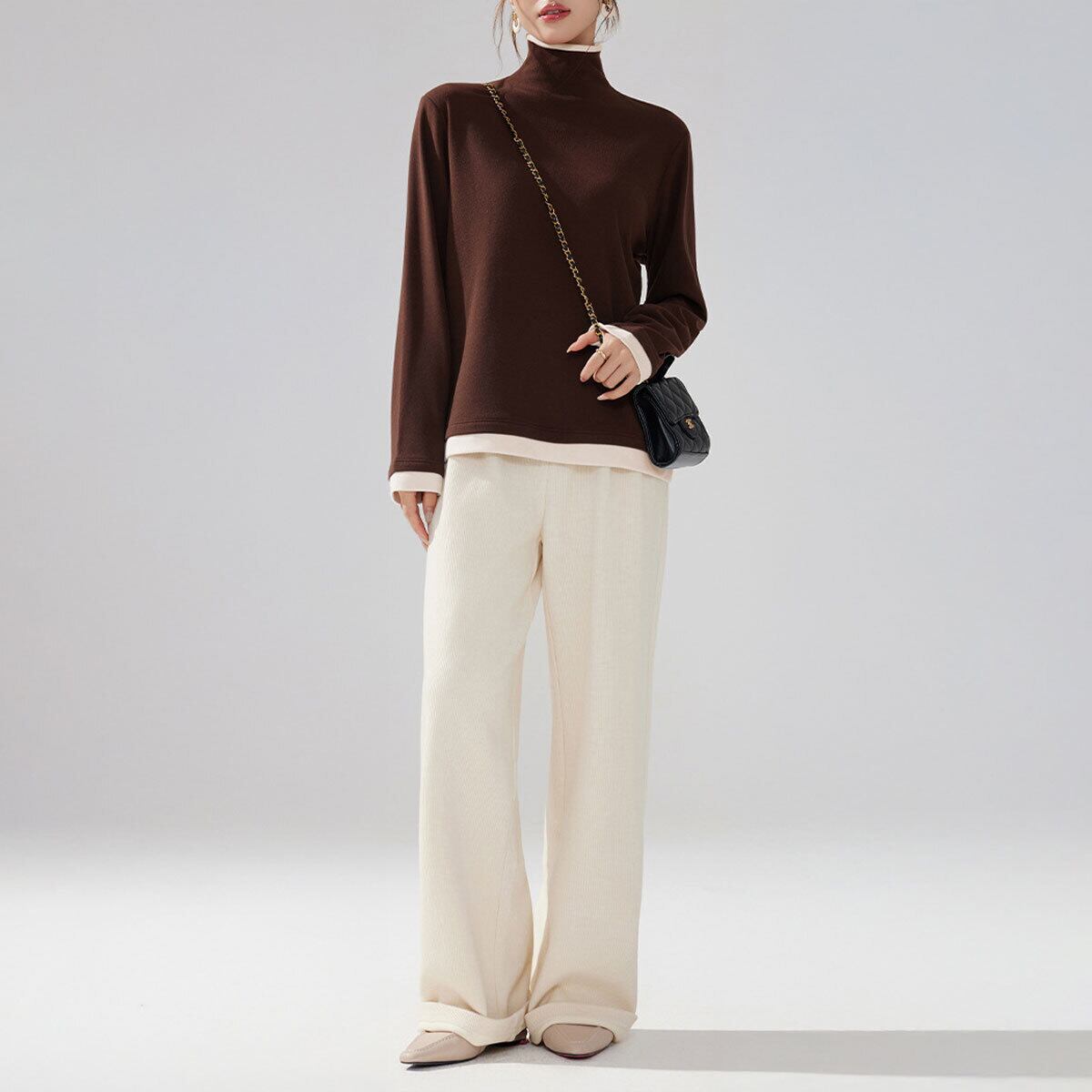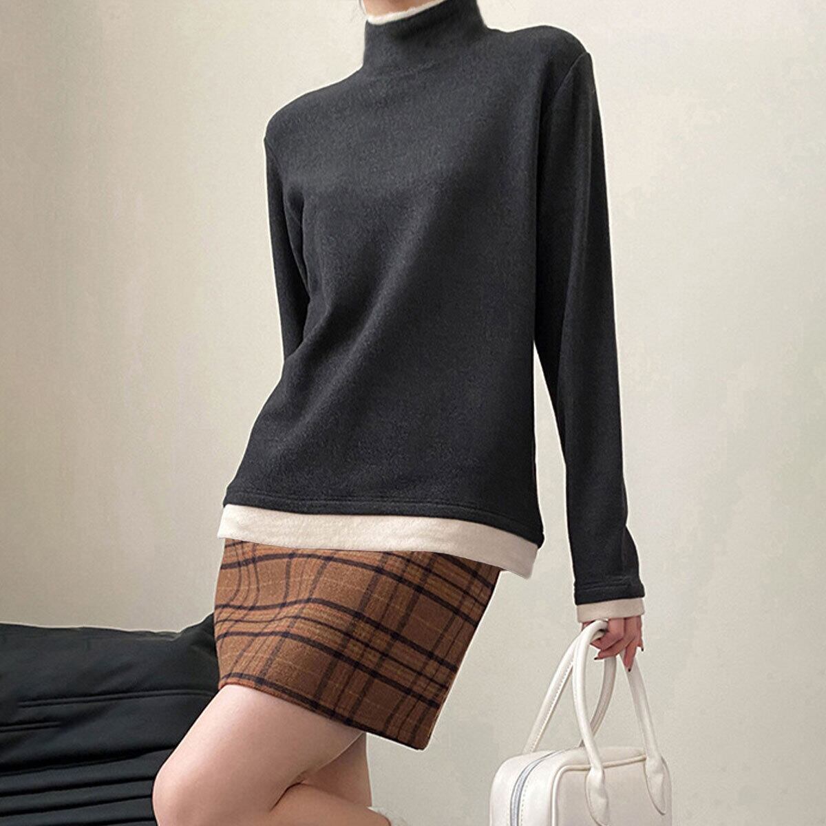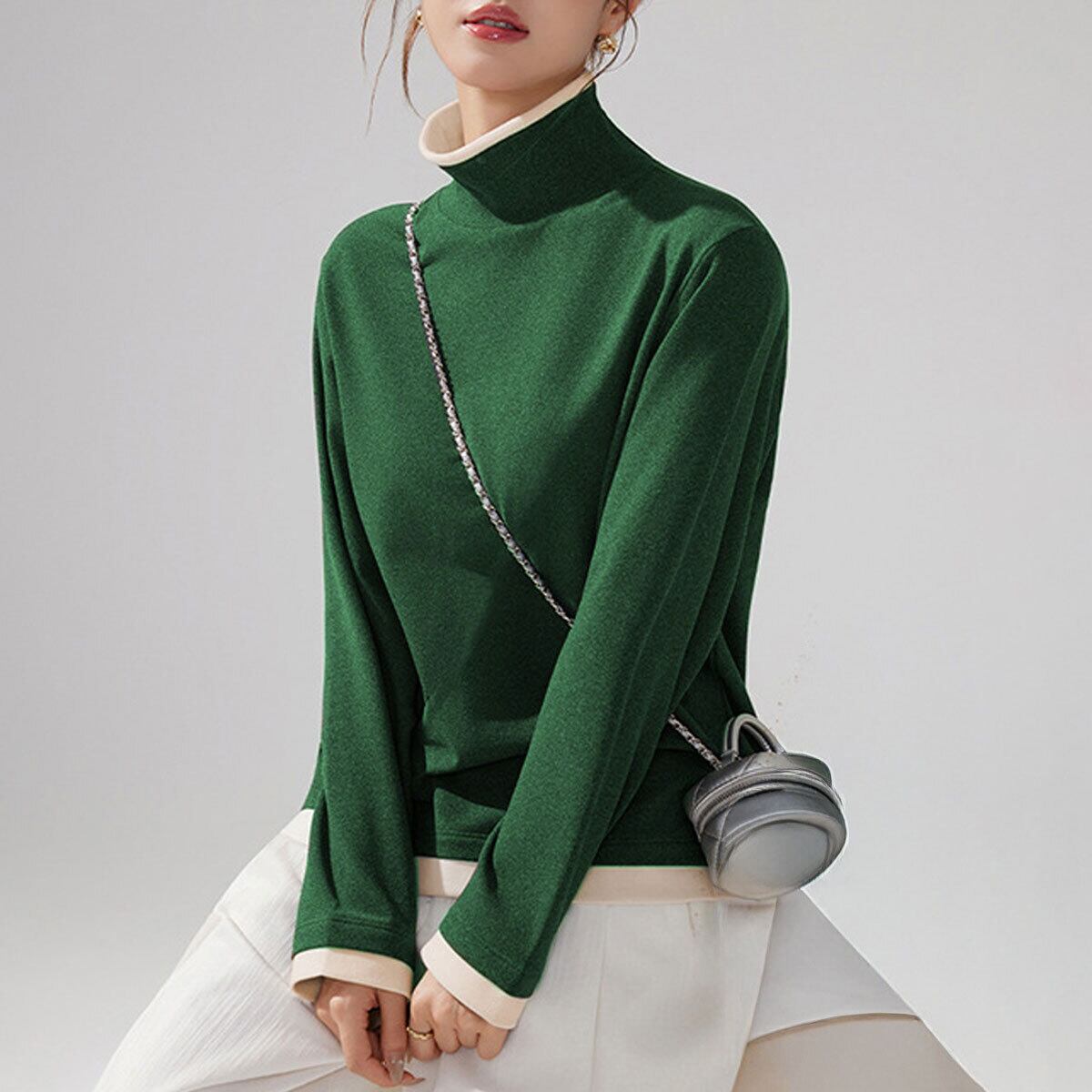 ◇配色デザインがポイントのシンプルなハイネック長袖トップス。