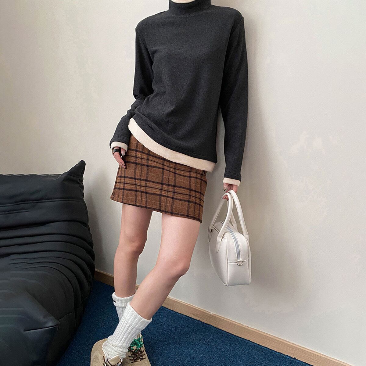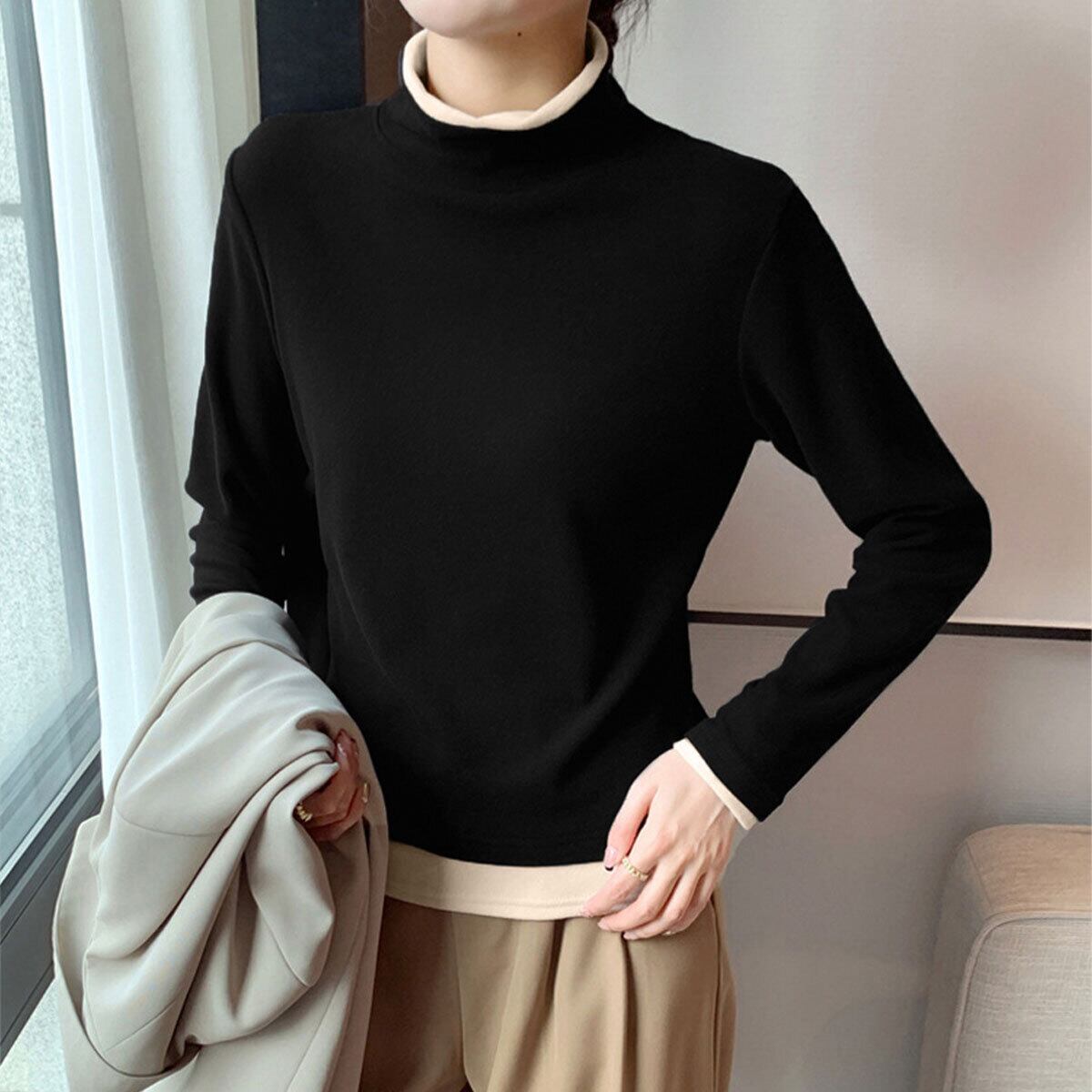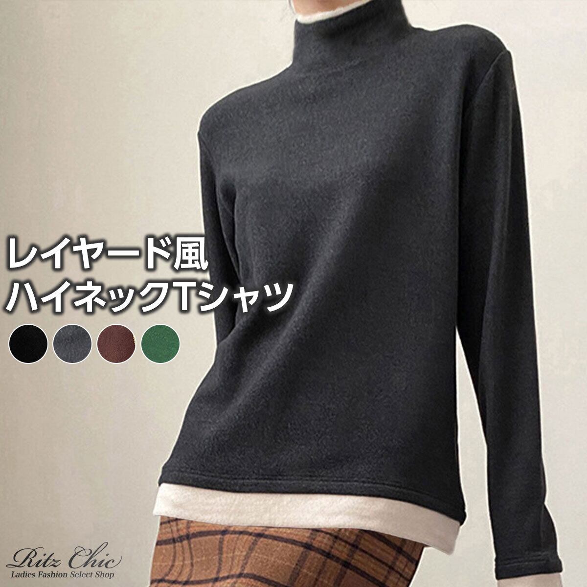 レイヤード風 Tシャツ 長袖 ハイネック レディース 春秋冬 韓国 トップス きれいめ 大人 カジュアル ロンT 重ね着 タートルネック 防寒 保温 大人可愛い 大人女子