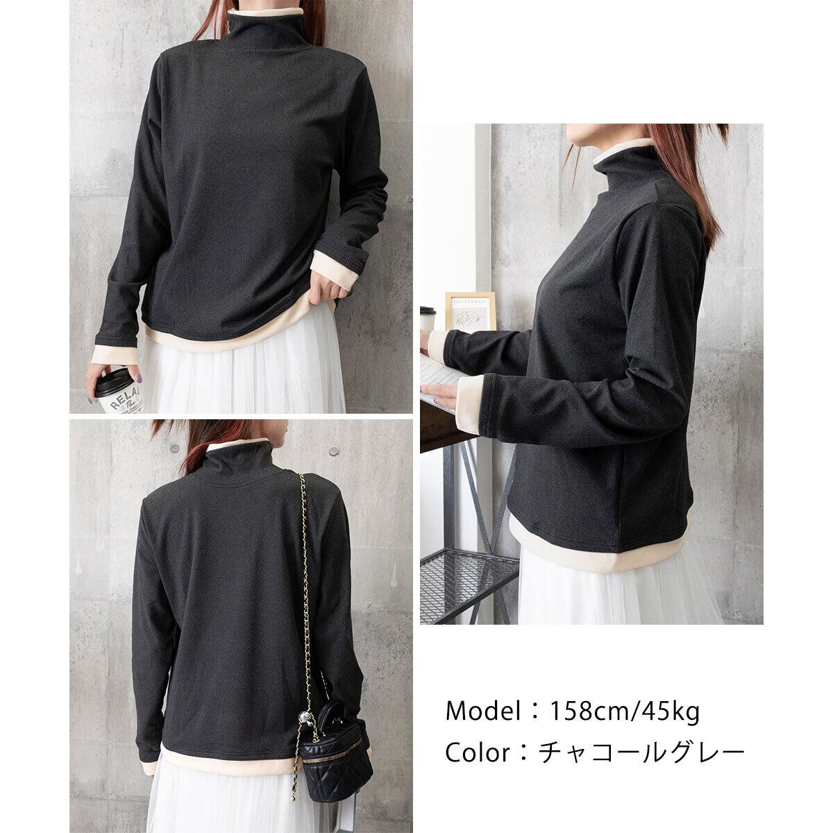 ◇レイヤード風デザインの長袖ハイネックTシャツ。
