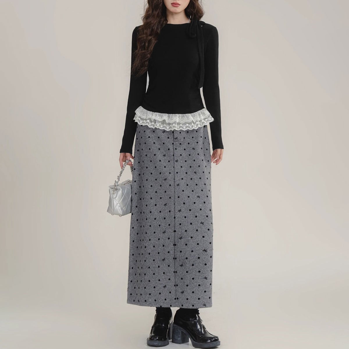 どんなボトムスとも相性が良く、リボンとレースで華やかさをプラスし、大人可愛いコーデに仕上げてくれます。