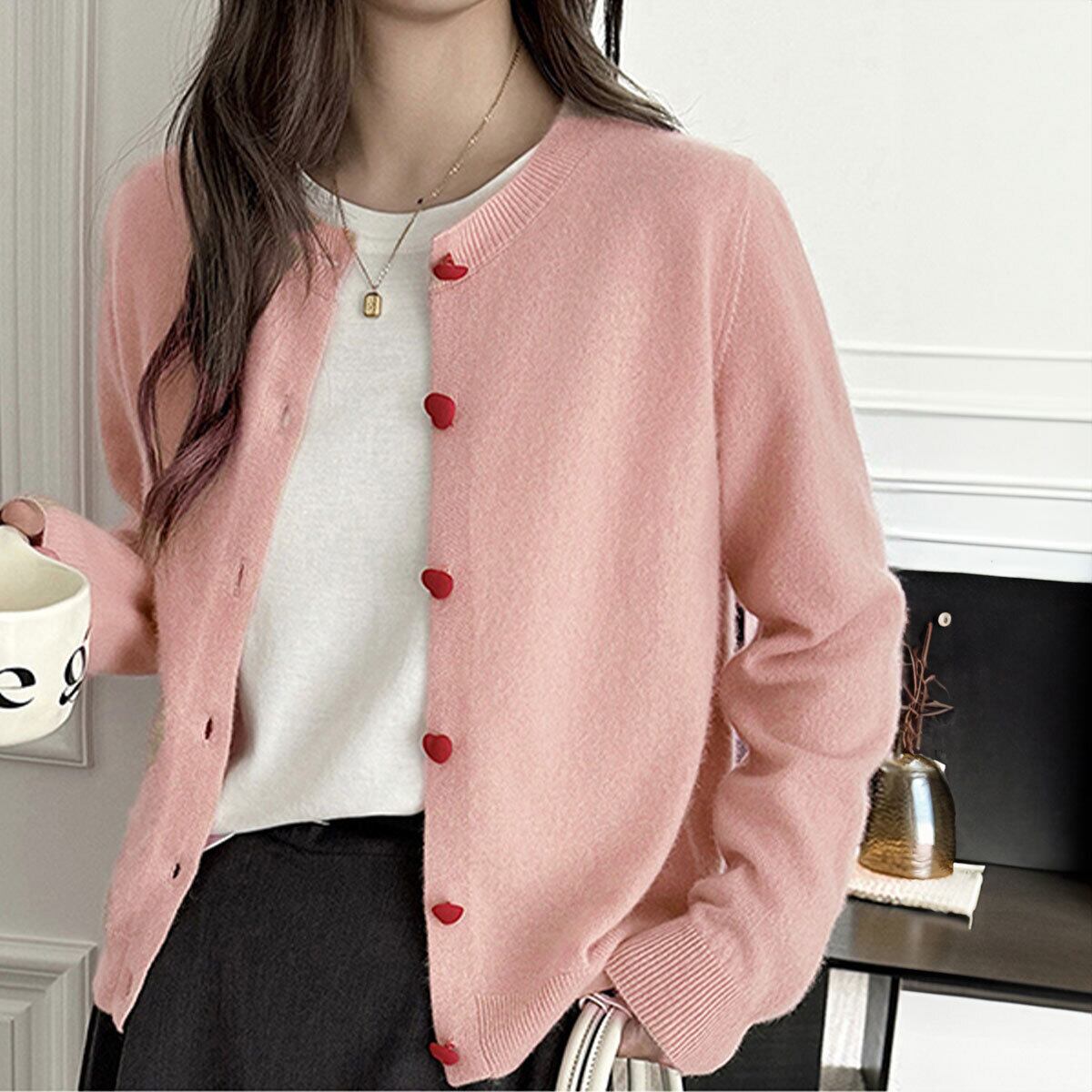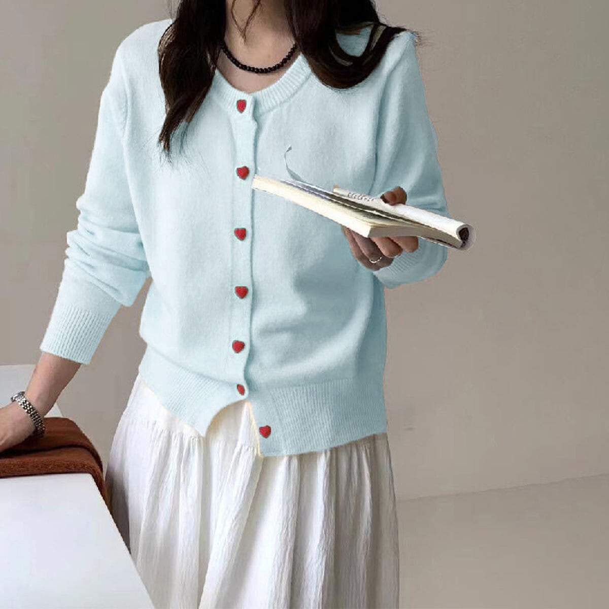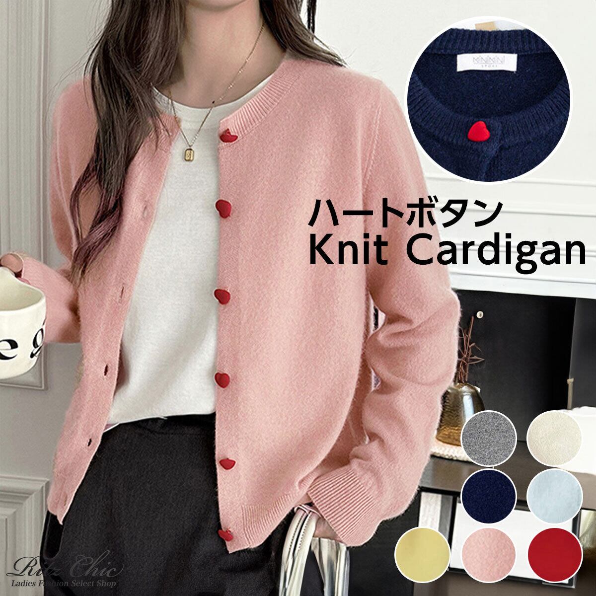 ハートボタン カーディガン ニット レディース 韓国 春秋 おしゃれ 大人 かわいい 羽織り トップス フェミニン ゆったり 無地 洗えるニット きれいめ 大人可愛い 大人女子