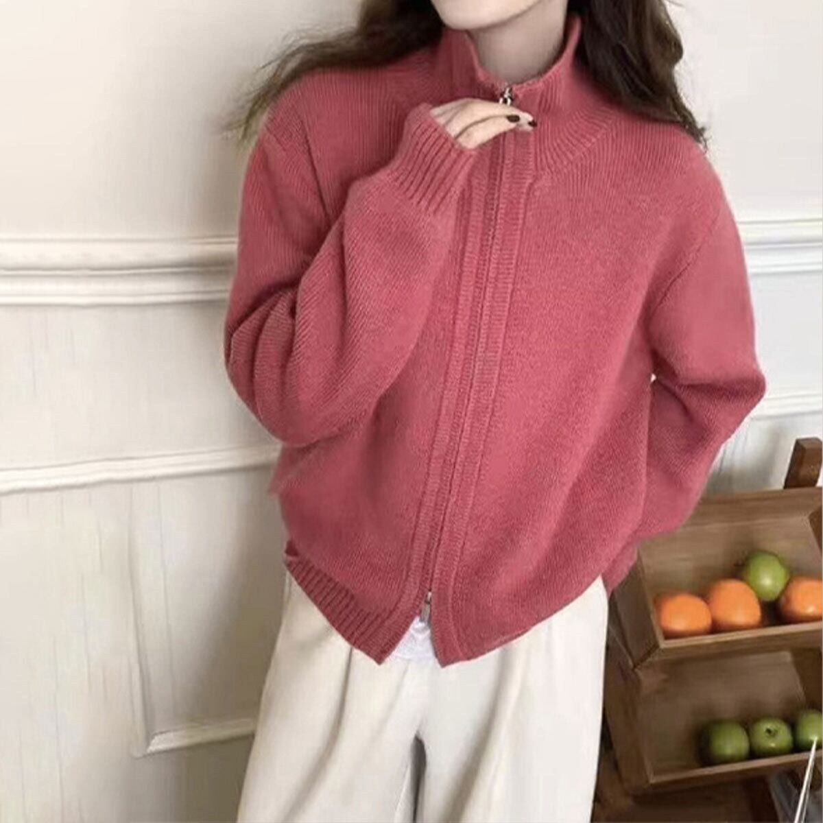 ダブルジップ ニット カーディガン フード付き レディース 秋冬 韓国 ジップアップ セーター おしゃれ 大人 カジュアル 暖かい 柔らかい ゆったり 体型カバー 大人可愛い 大人女子