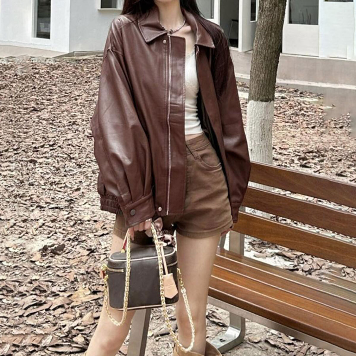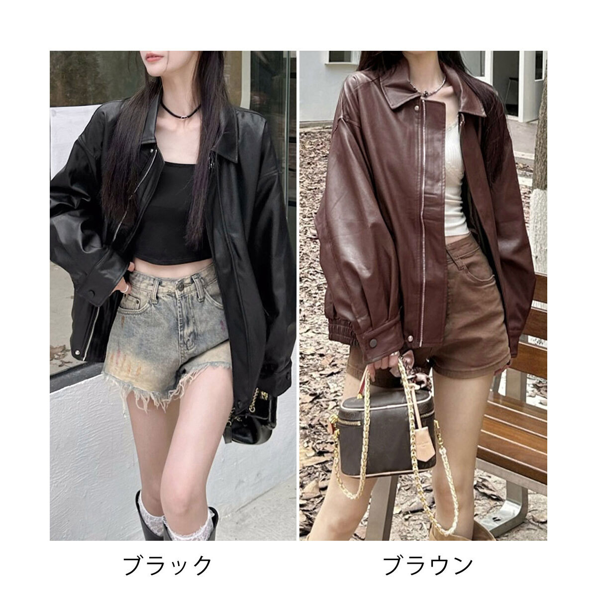 ライダース ジャケット PUレザー レディース 韓国 ブルゾン 秋冬 防寒 防風 大人 カジュアル ストリート 原宿系 レトロ 革ジャン レザージャケット アウター 大人可愛い 大人女子