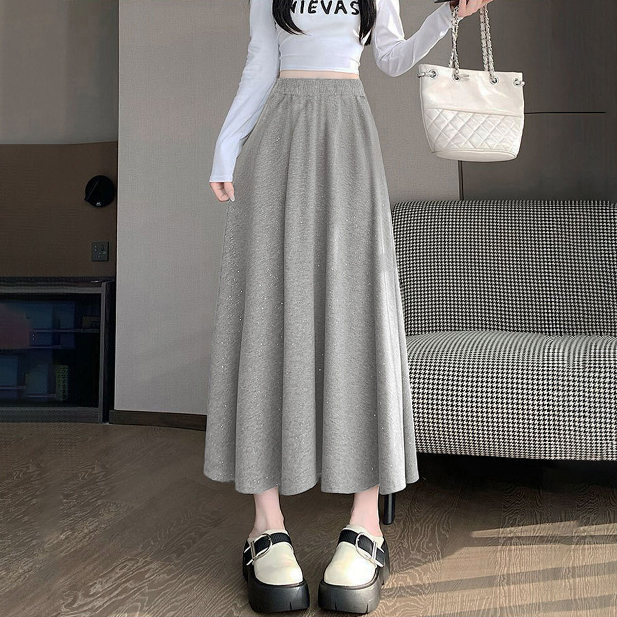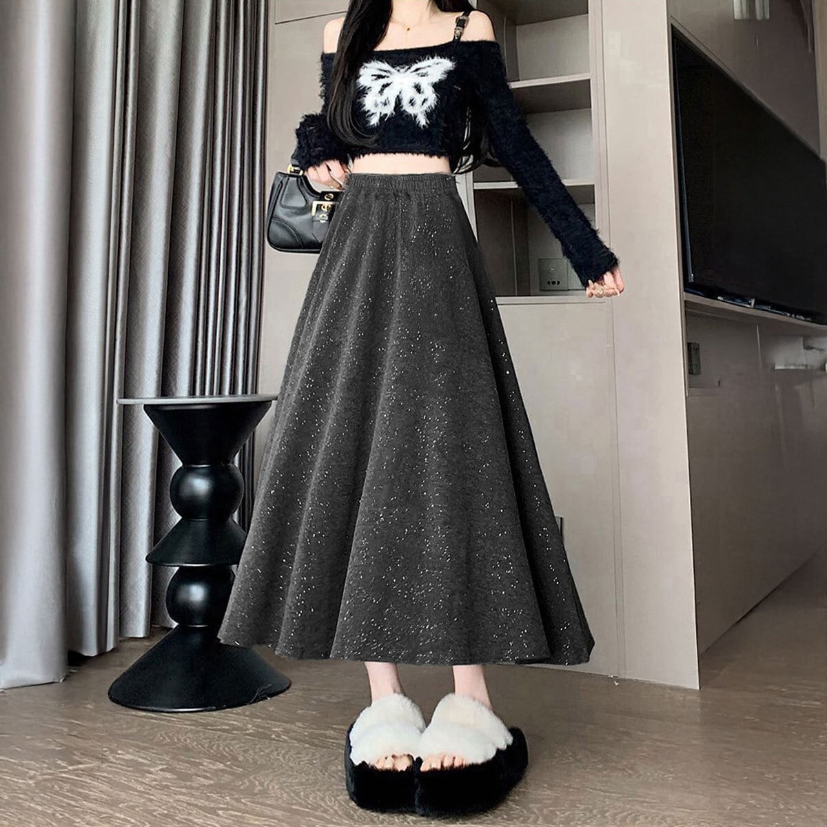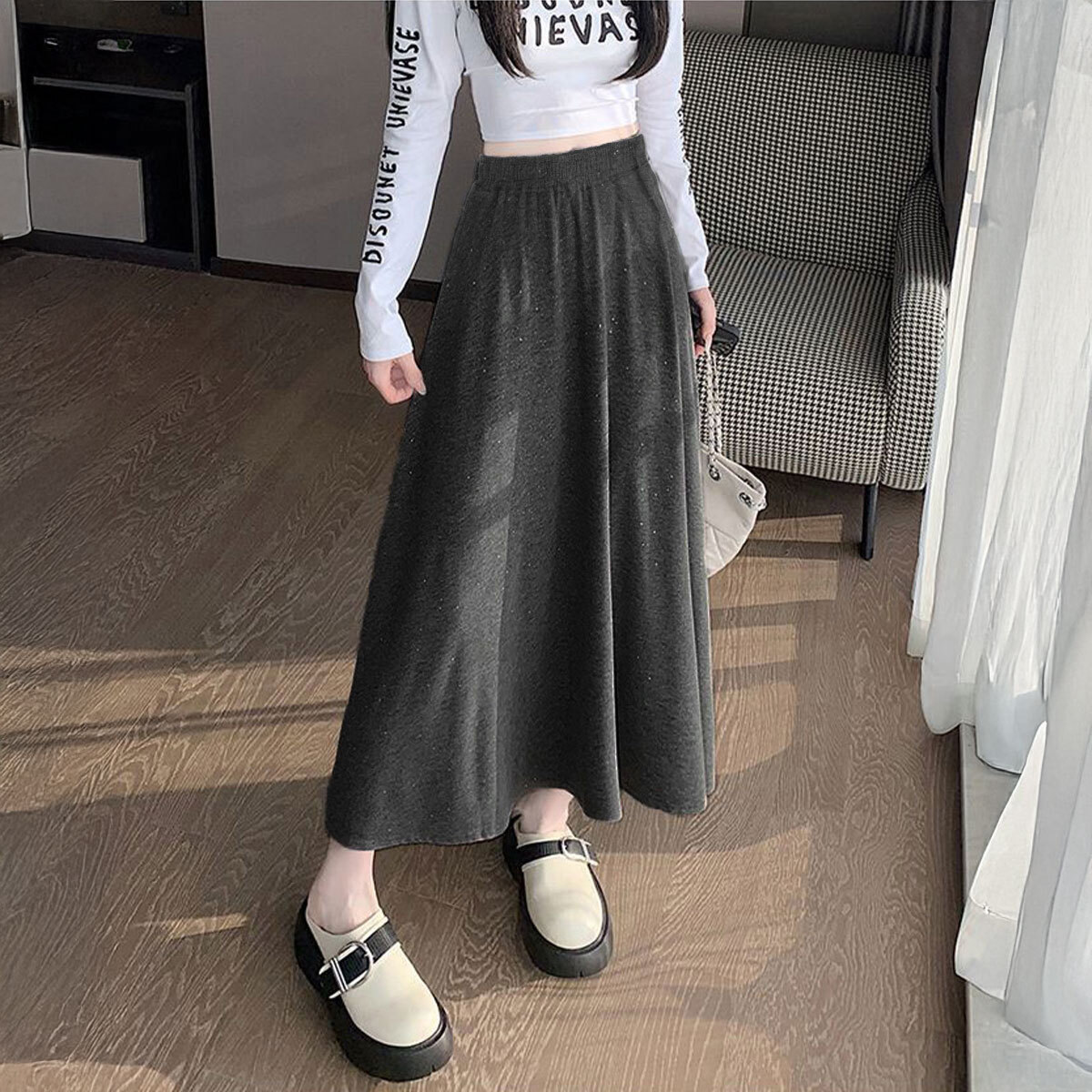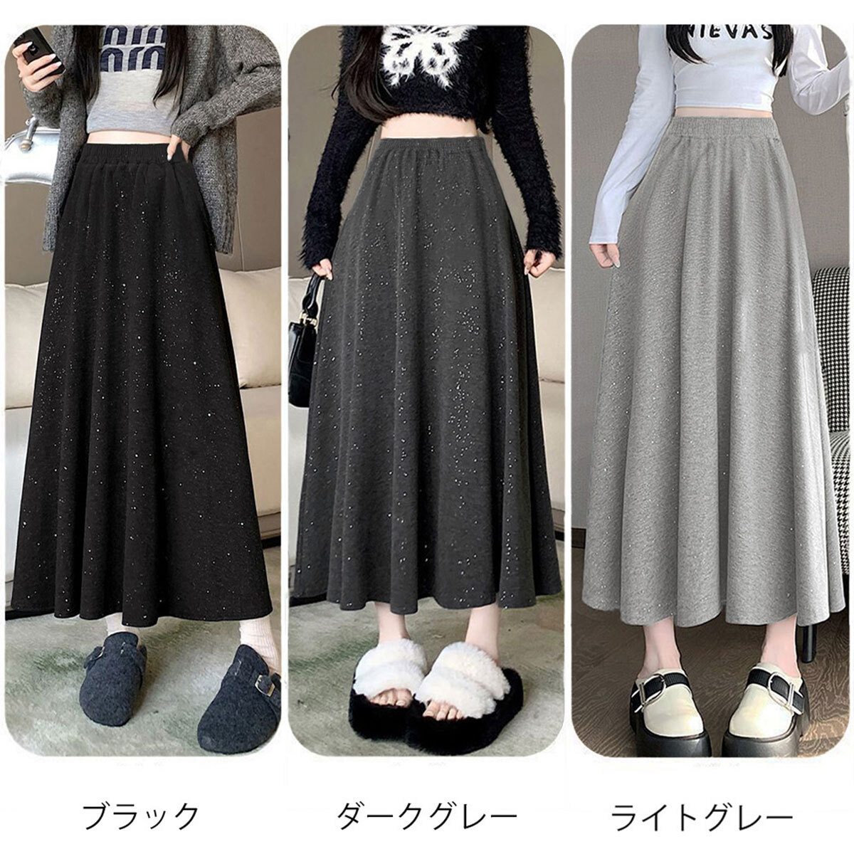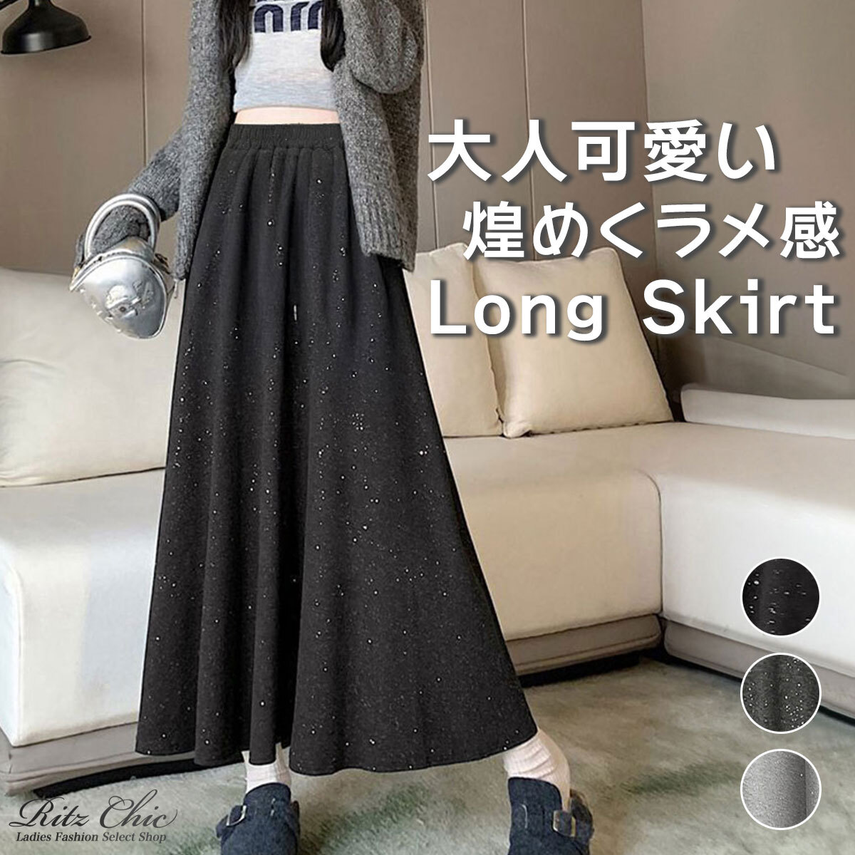 ロングスカート ラメ入り フレア レディース 春秋冬 韓国 おしゃれ 大人 かわいい きれいめ キラキラ ゆったり 体型カバー ハイウエスト ウエストゴム 大人可愛い 大人女子