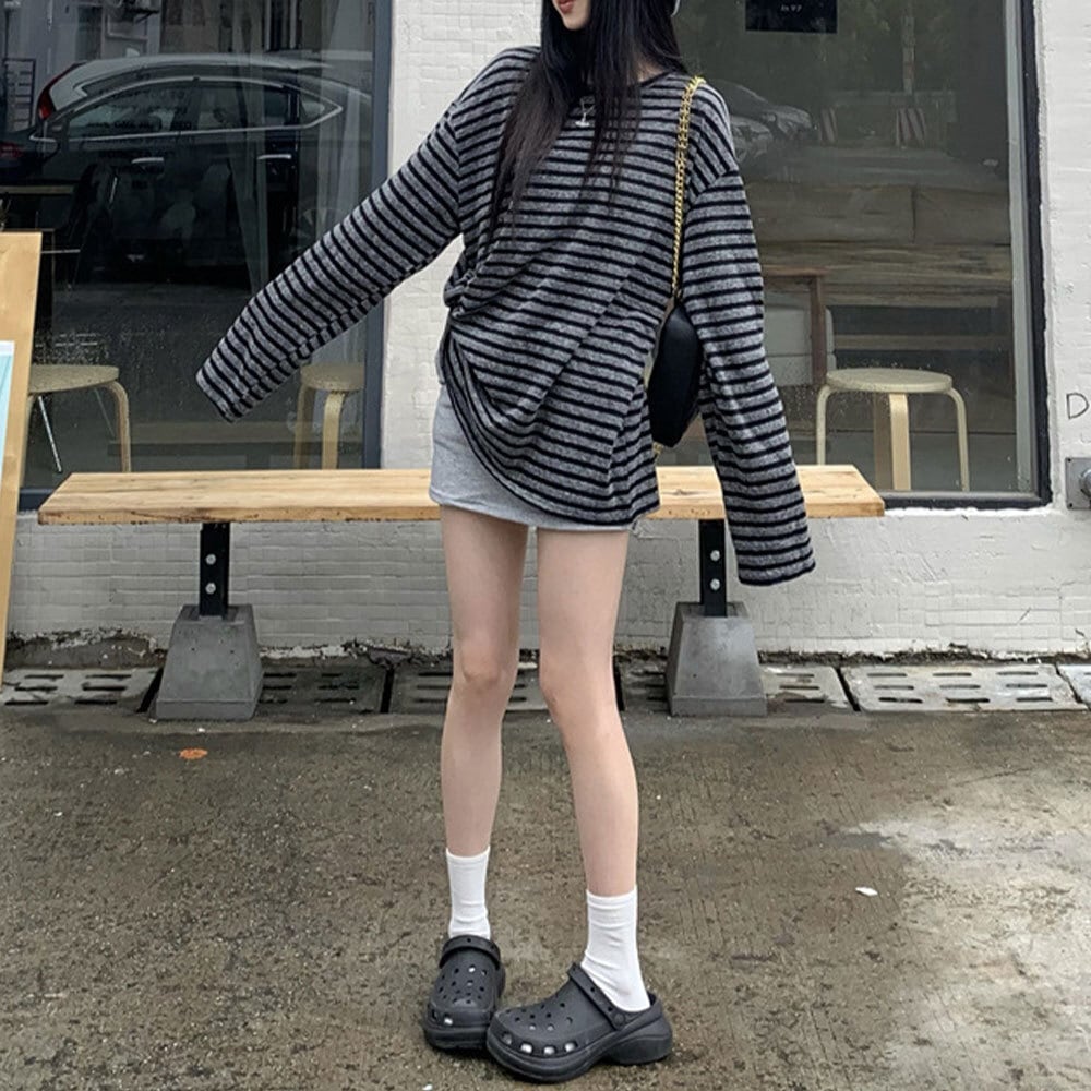 ◇ゆるシルエットのボーダーデザイン長袖Tシャツ。