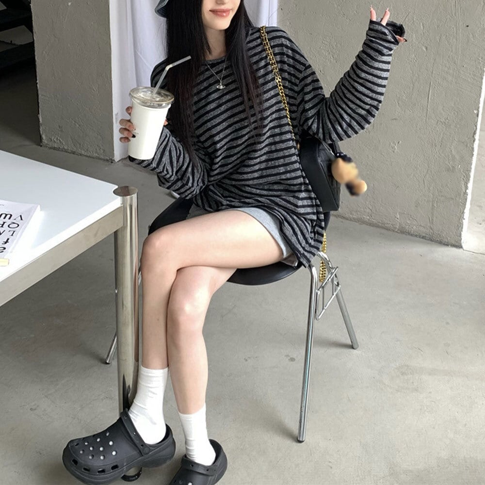 ボーダー 長袖 Tシャツ レディース 春秋 韓国 おしゃれ 大人 カジュアル アメカジ かわいい ゆったり 体型カバー ボーダーTシャツ トップス 大人可愛い 大人女子 【送料無料】