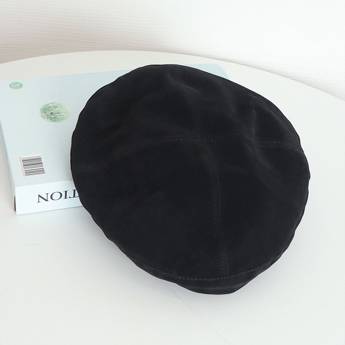 ◇スエード調素材で防寒対策に最適なベレー帽。