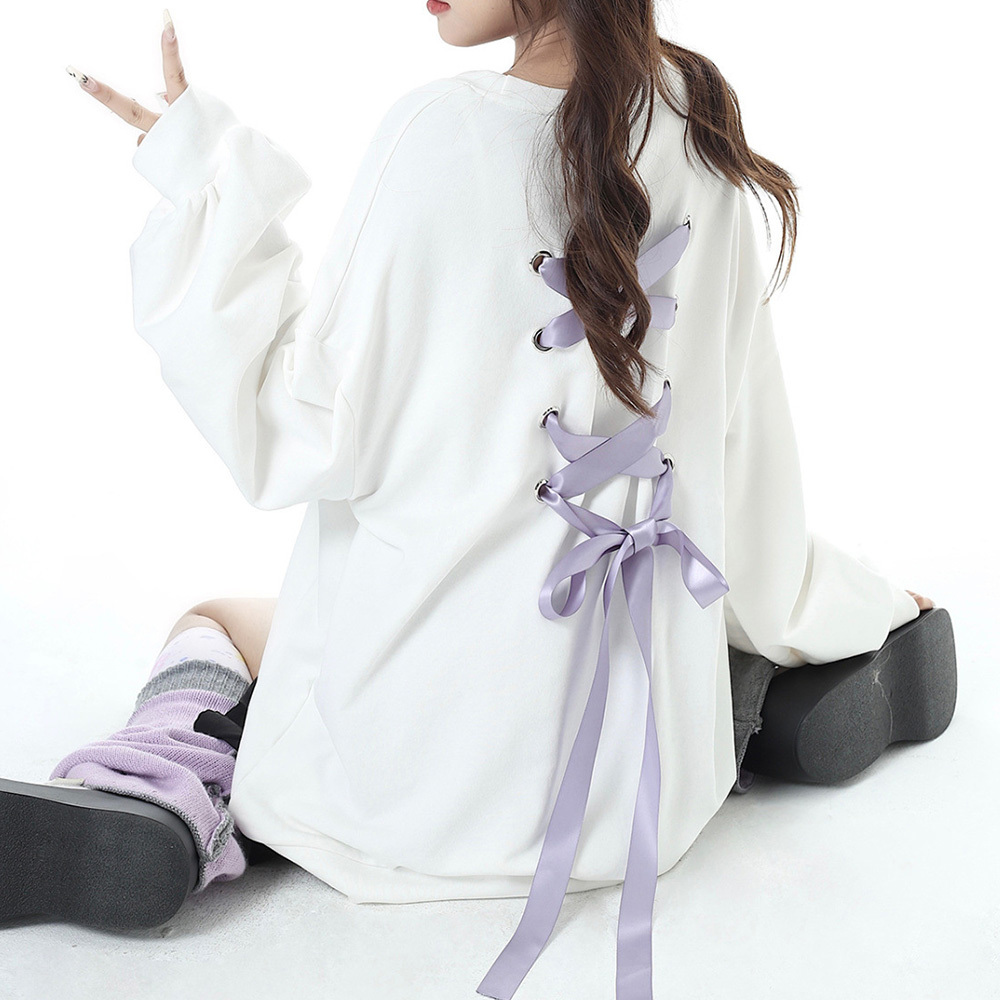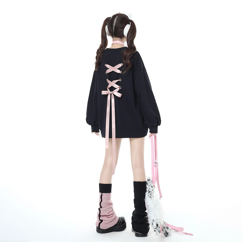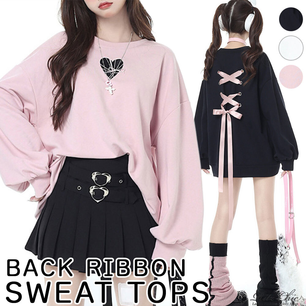 スウェット トップス バックリボン レディース 韓国 秋冬 おしゃれ ガーリー 原宿系 大人 かわいい ゆったり 体型カバー トレーナー オーバーサイズ 大人可愛い 大人女子 【送料無料】
