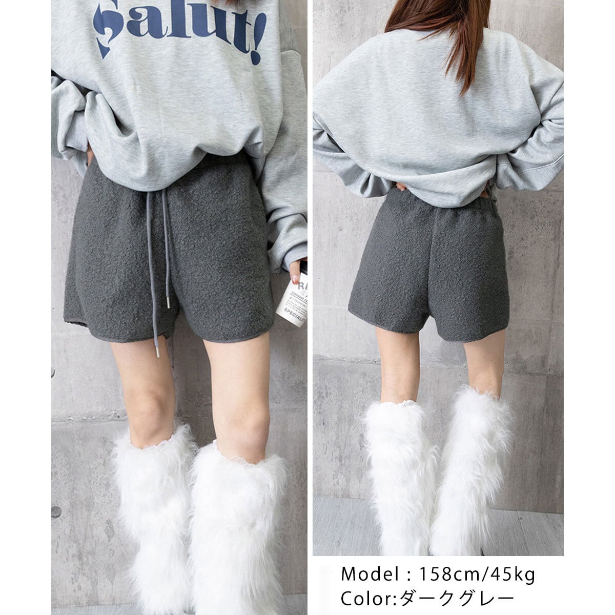 柔らかくて暖かいもこもこ感たっぷりのボアショートパンツです。