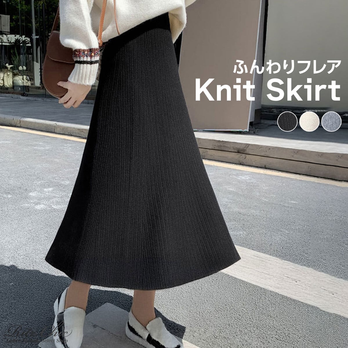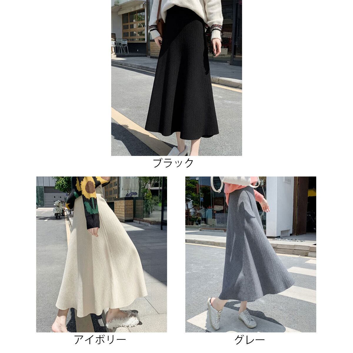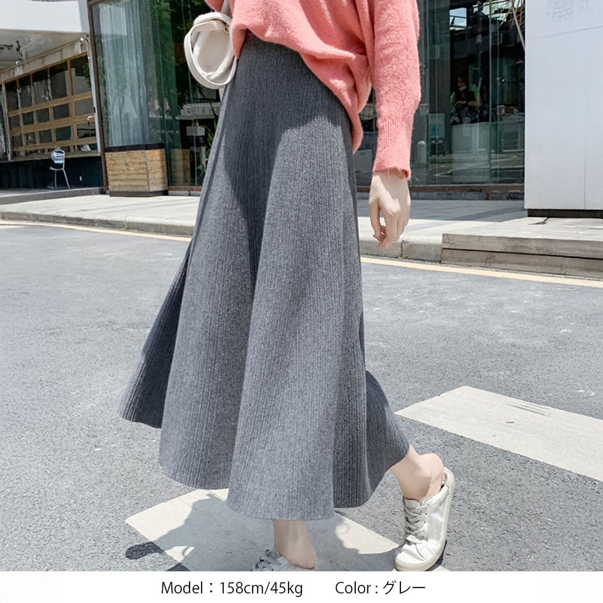 ニットスカート フレア ロングスカート レディース 秋冬 韓国 きれいめ 大人 かわいい シンプル おしゃれ カジュアル ハイウエスト ゆったり 体型カバー 大人可愛い 大人女子