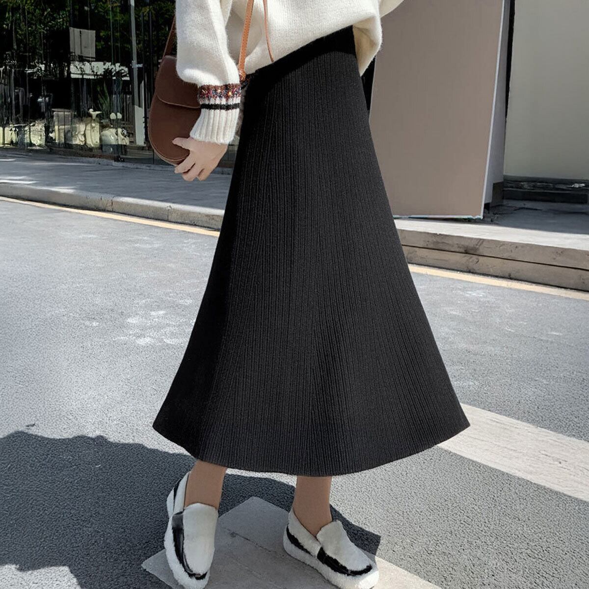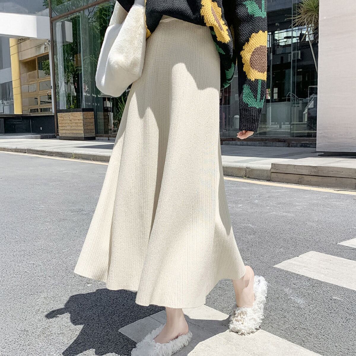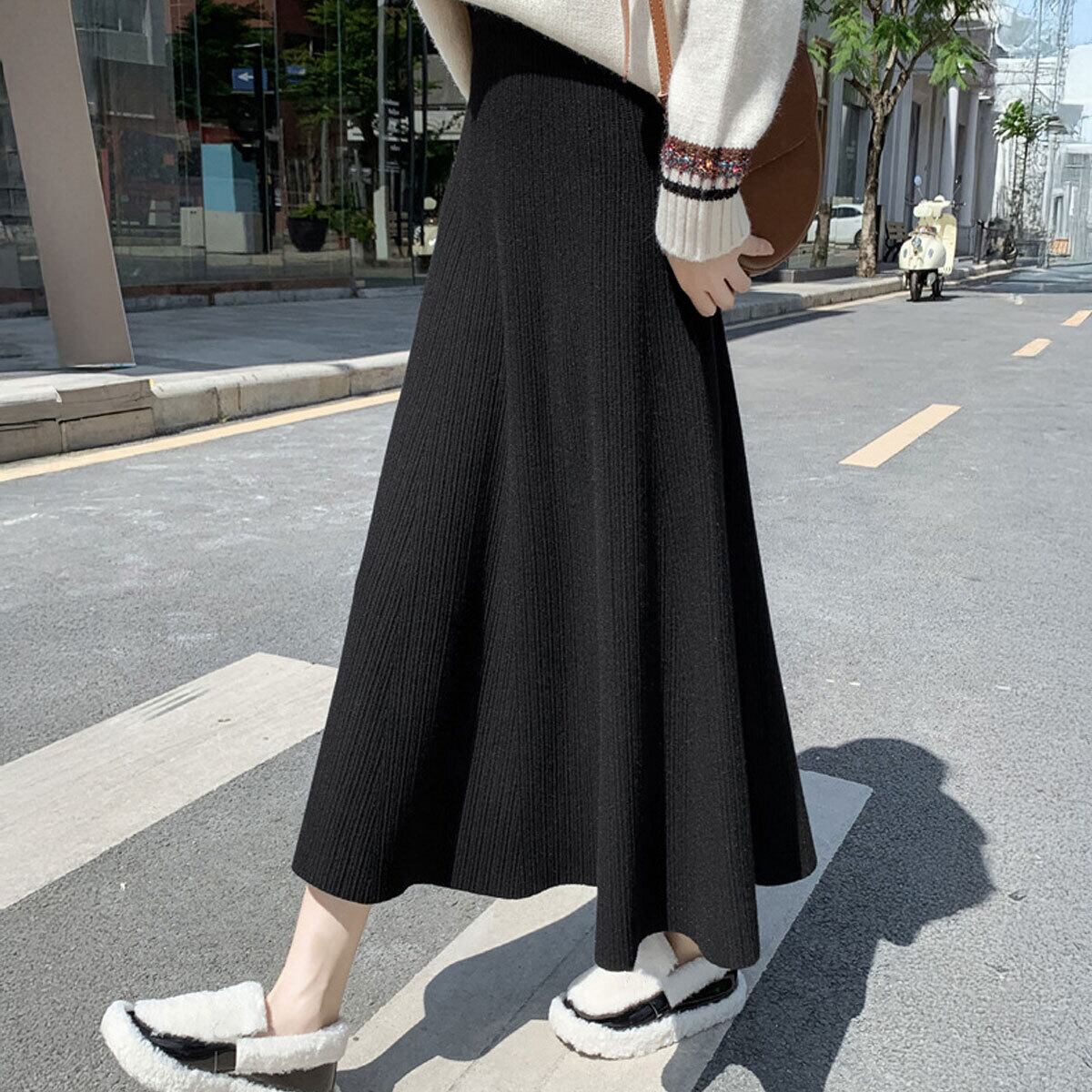 ニットスカート フレア ロングスカート レディース 秋冬 韓国 きれいめ 大人 かわいい シンプル おしゃれ カジュアル ハイウエスト ゆったり 体型カバー 大人可愛い 大人女子