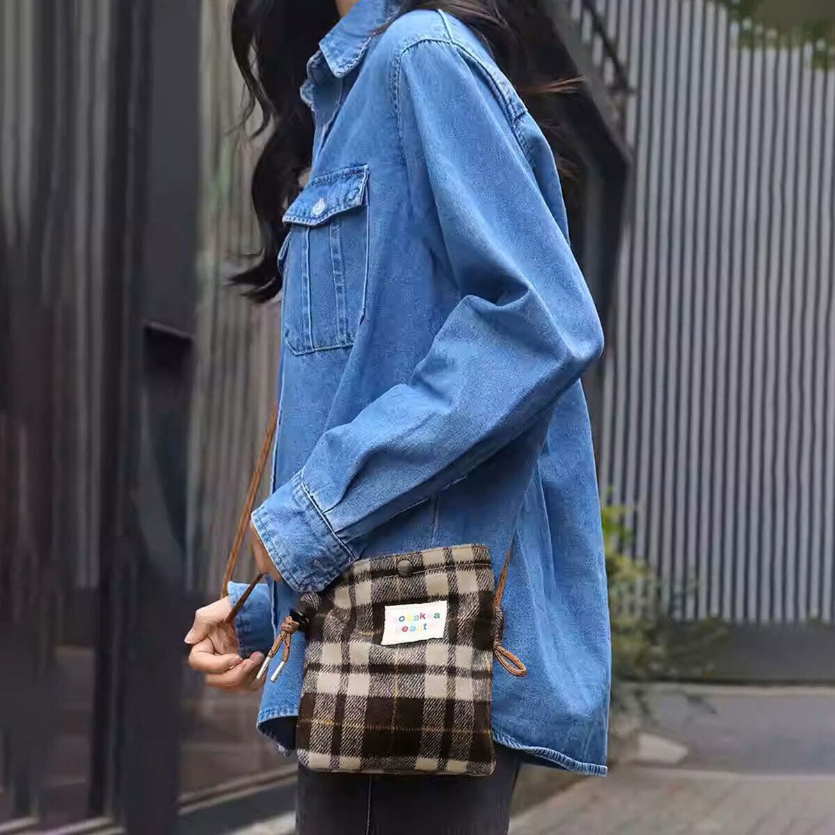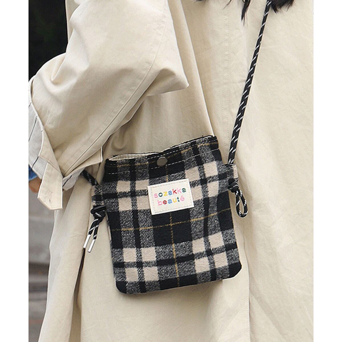ウール調素材を使用した柄デザインが、秋冬のコーディネートに映えてくれるミニサイズのショルダーバッグです。