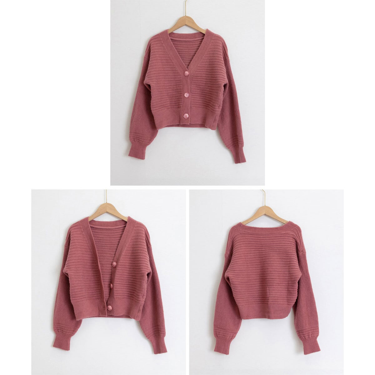 ◇リブ編みデザインが特徴的なショート丈ニットカーディガン。