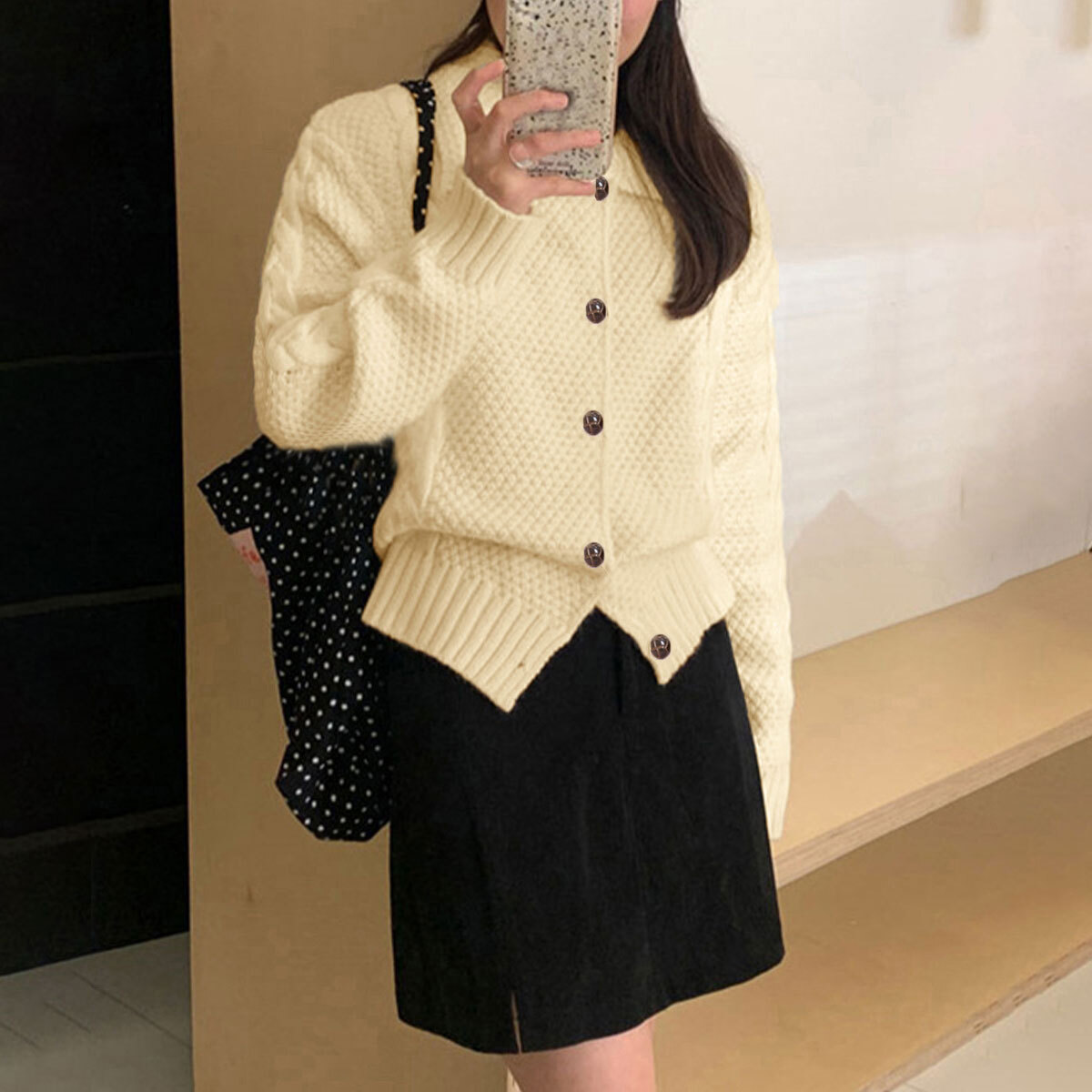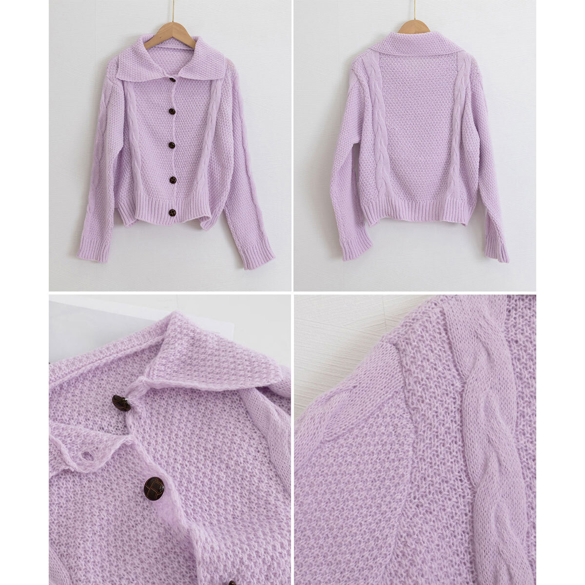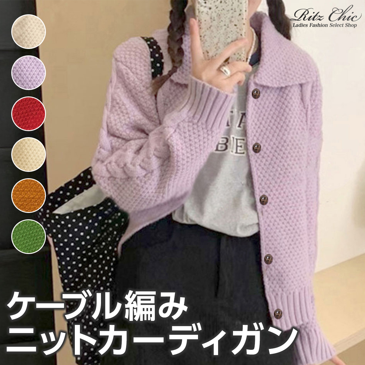 ケーブル編み カーディガン レディース 秋冬 韓国 ケーブルニット 襟付き きれいめ 大人 カジュアル レトロ おしゃれ ビッグカラー シンプル 通勤 通学 ニットカーデ 大人可愛い 大人女子