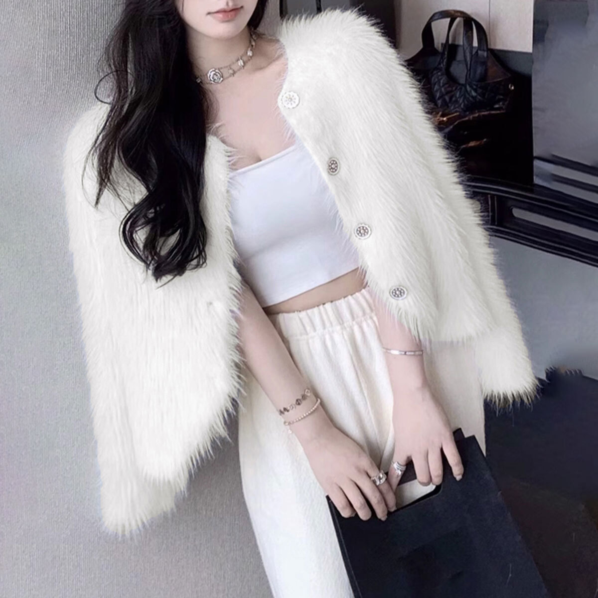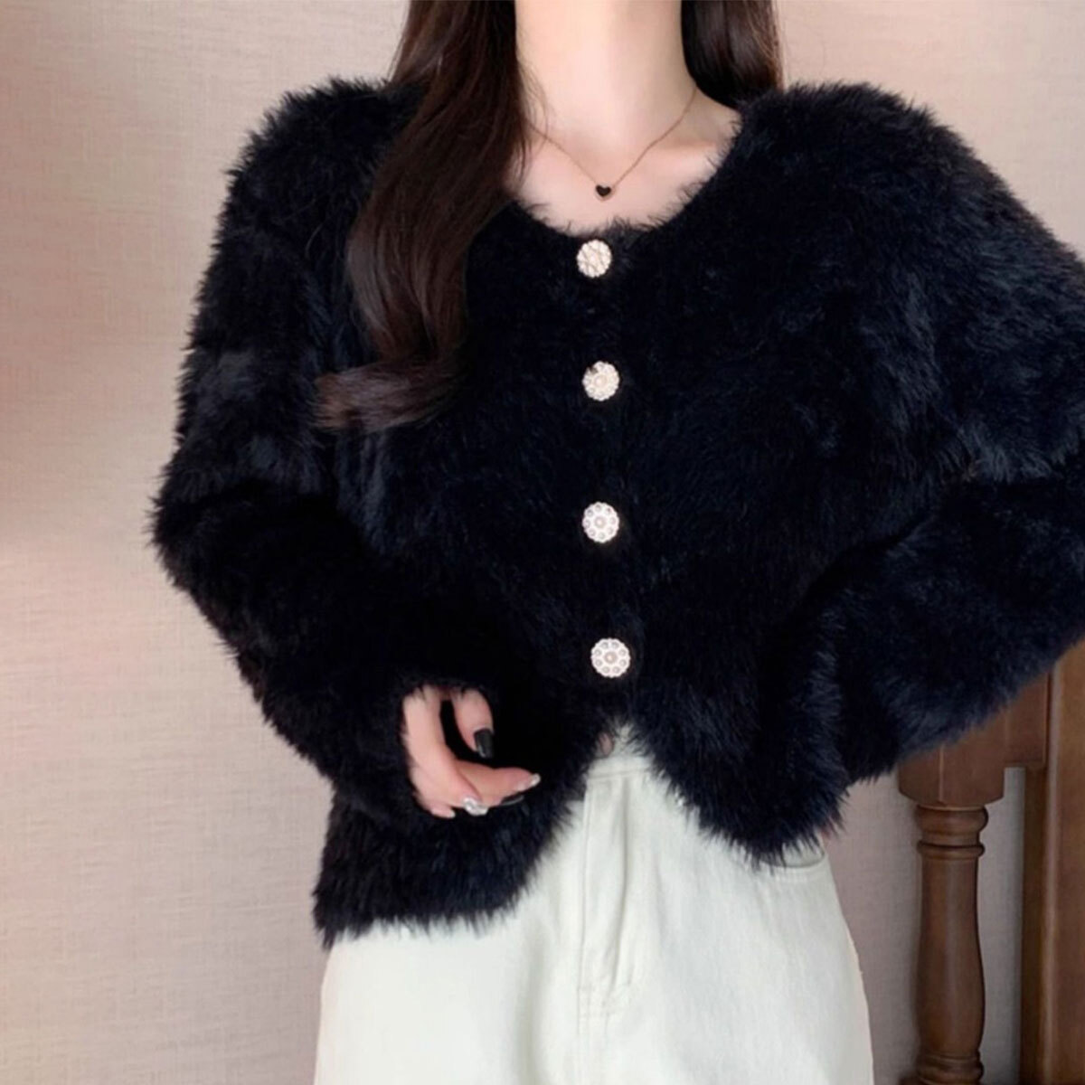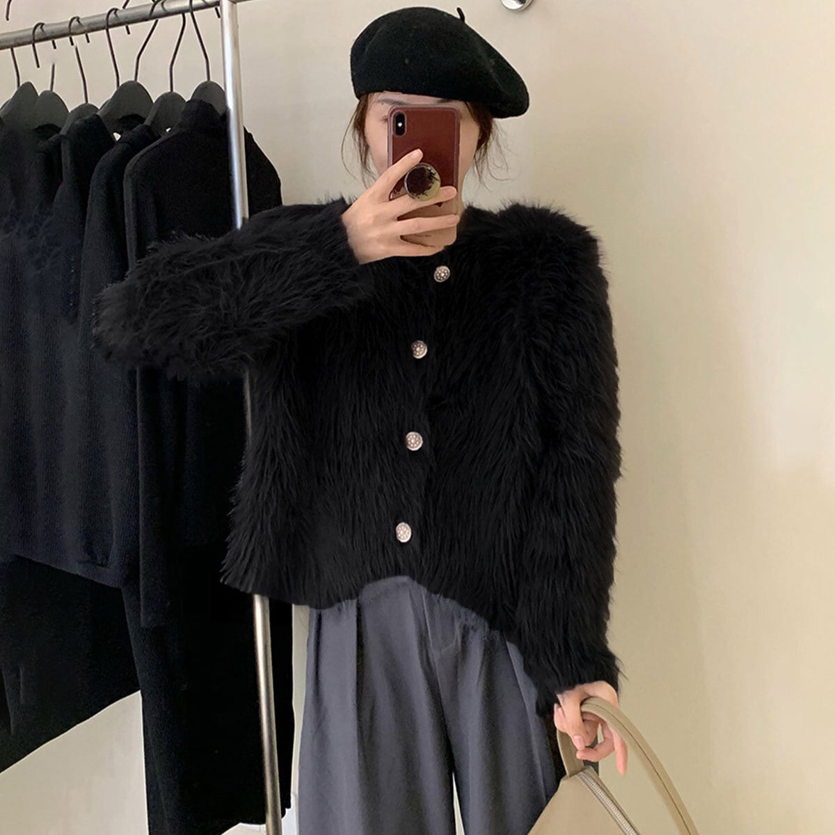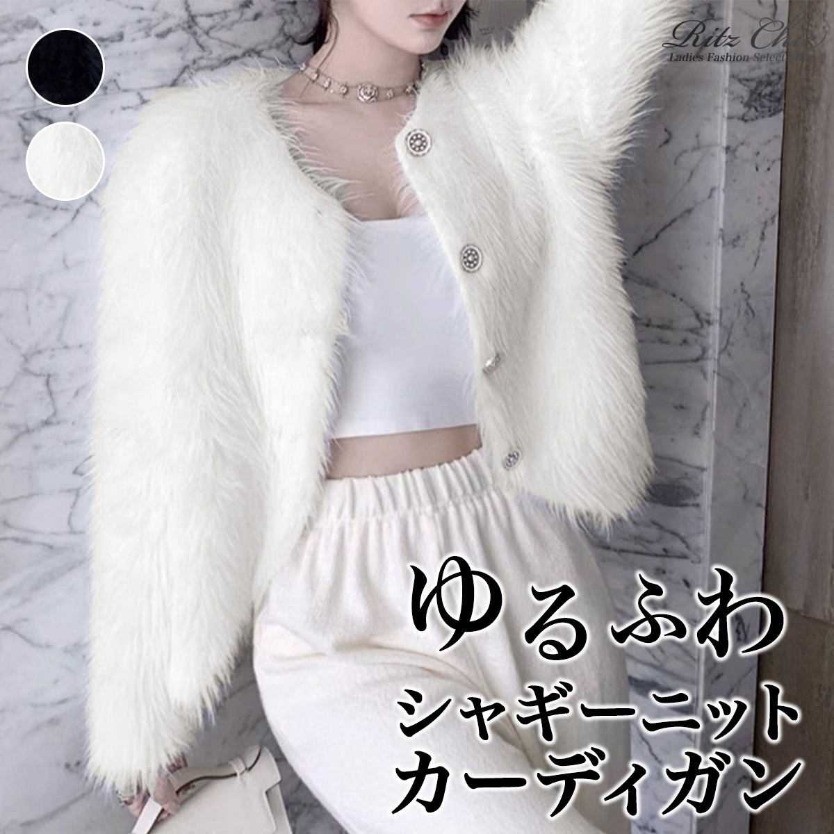 シャギーニット カーディガン レディース 秋冬 韓国 きれいめ 上品 大人 高見え ふわふわ ゆったり フェイクファー ショート丈 ファージャケット 大人可愛い 大人女子