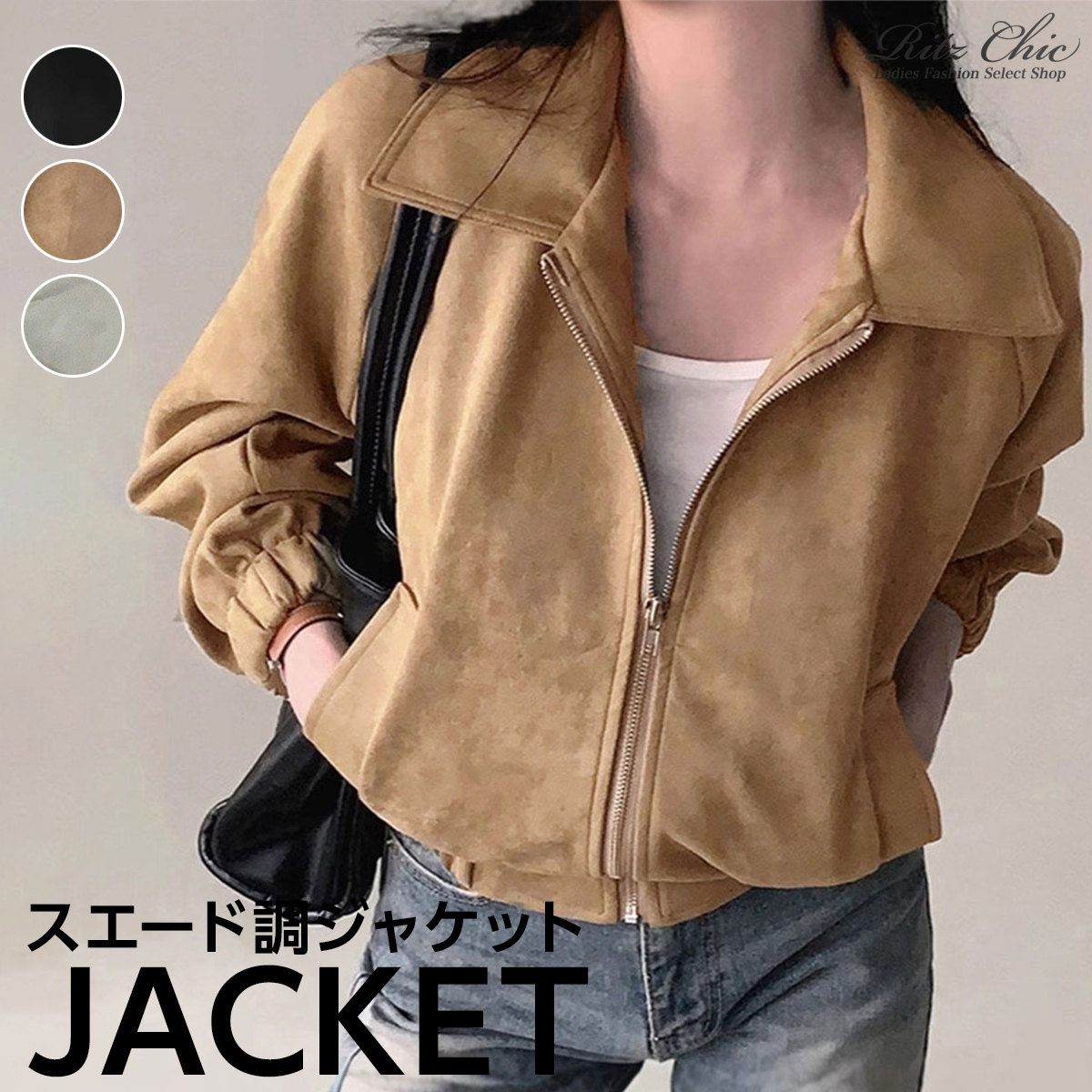 スエード調 ジャケット ライトアウター レディース 春秋冬 韓国 レトロ クラシック おしゃれ 大人 カジュアル ブルゾン アメカジ ジャンパー ショート丈 体型カバー ゆったり 大人可愛い 大人女子