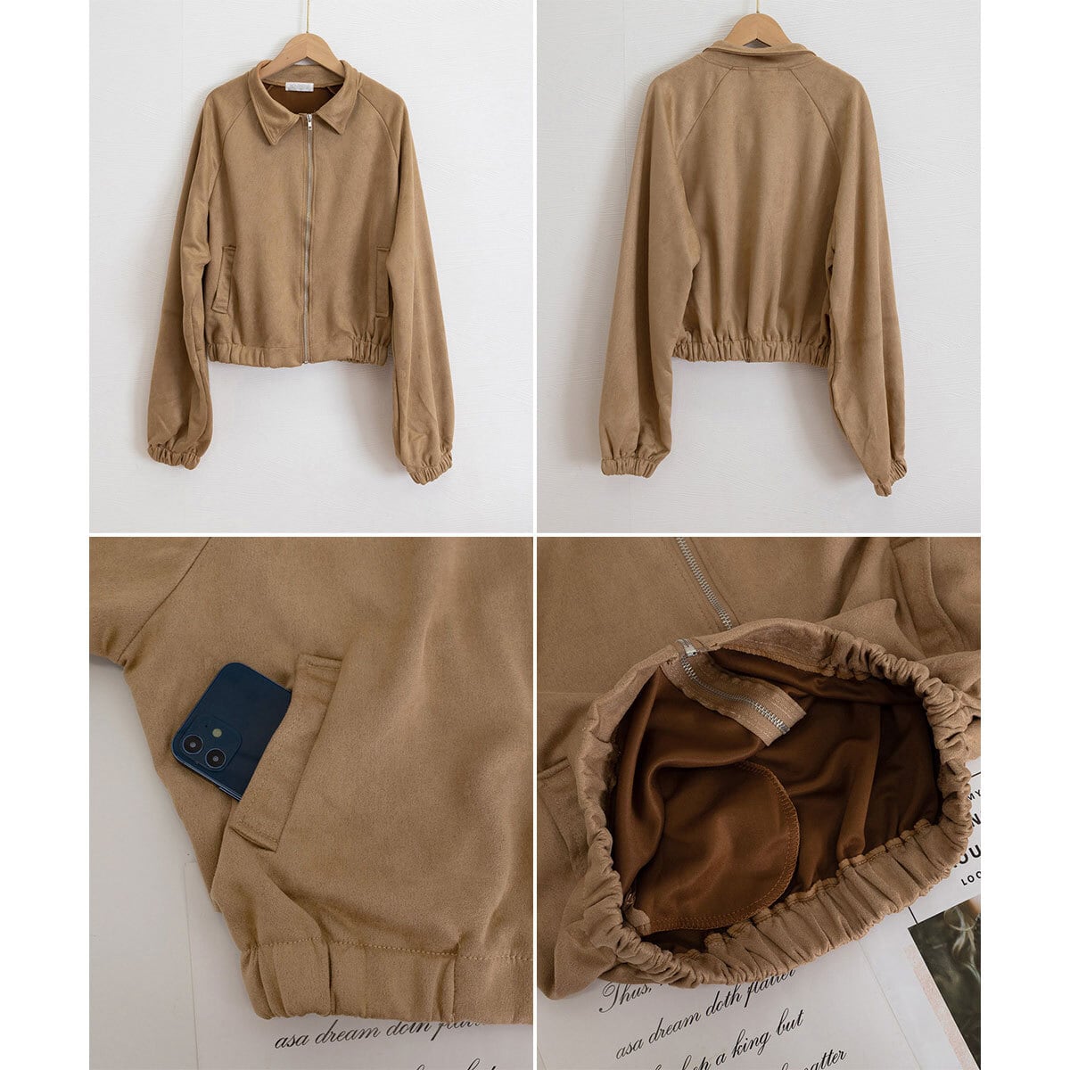 柔らかいマイクロスエード調素材で、快適な手触りと着心地が春秋スタイルにぴったりなショート丈ジャケットです。