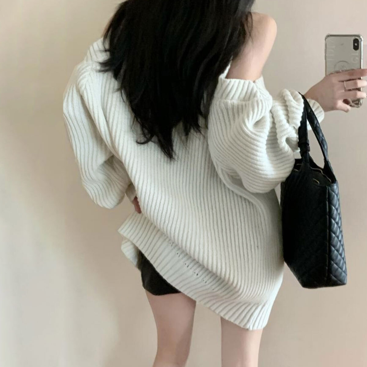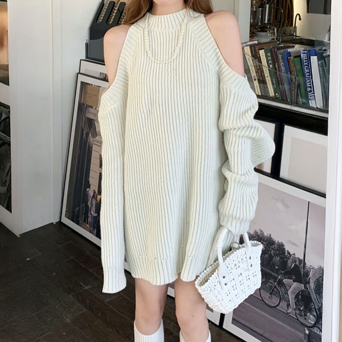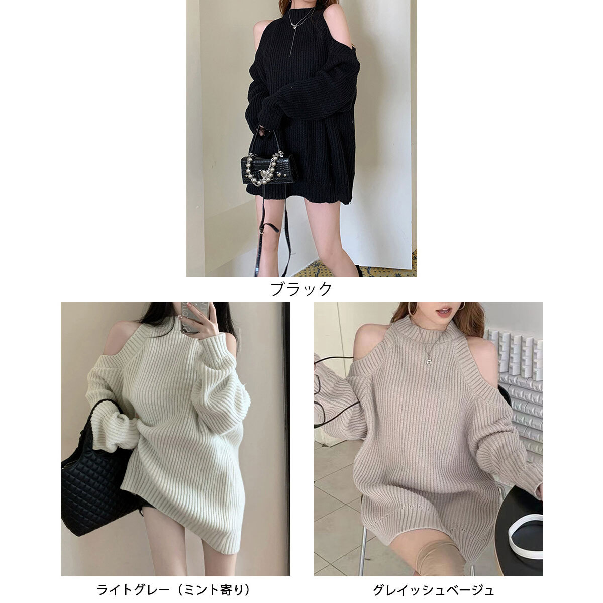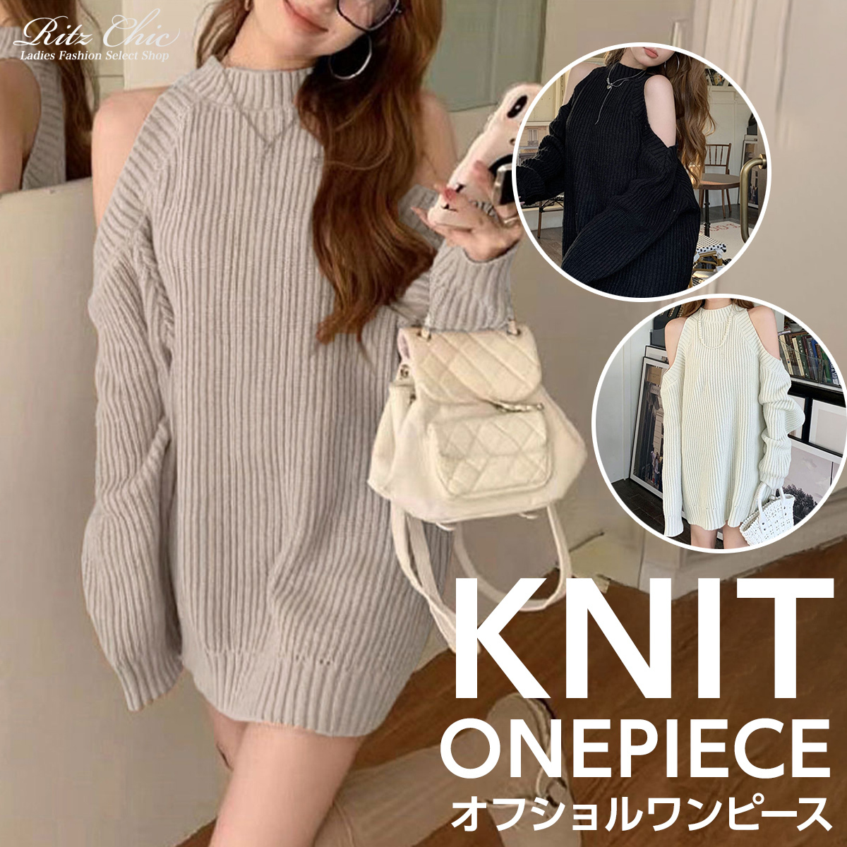 ミニワンピース ニット オフショルダー レディース 秋冬 韓国 チュニック おしゃれ きれいめ 大人 かわいい シンプル リブ編み リブニット 肩開き ワンピース 大人可愛い 大人女子
