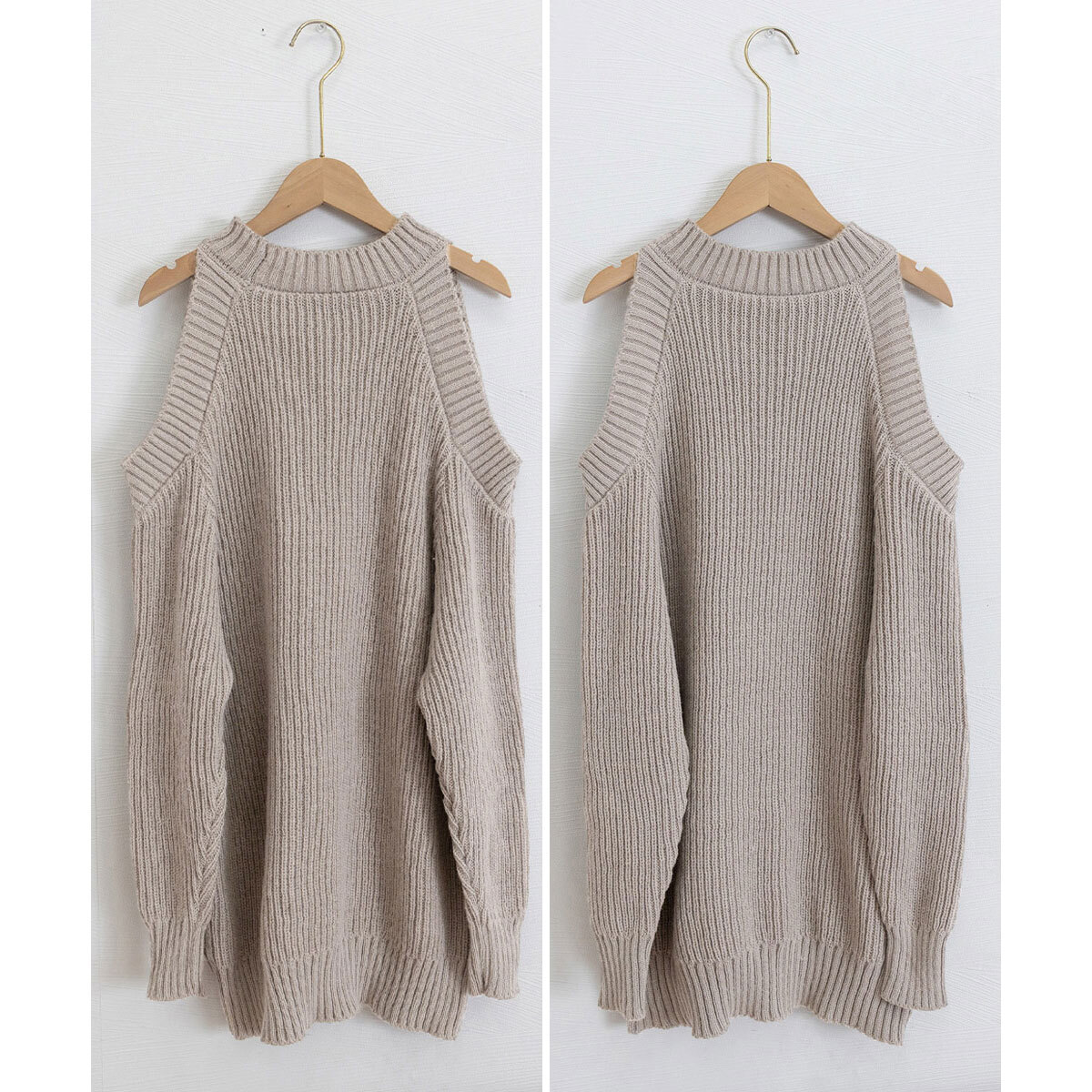 肌見せを楽しめるオフショルダー仕様で、フェミニンさと抜け感を演出してくれるリブ編みのニットワンピースです。