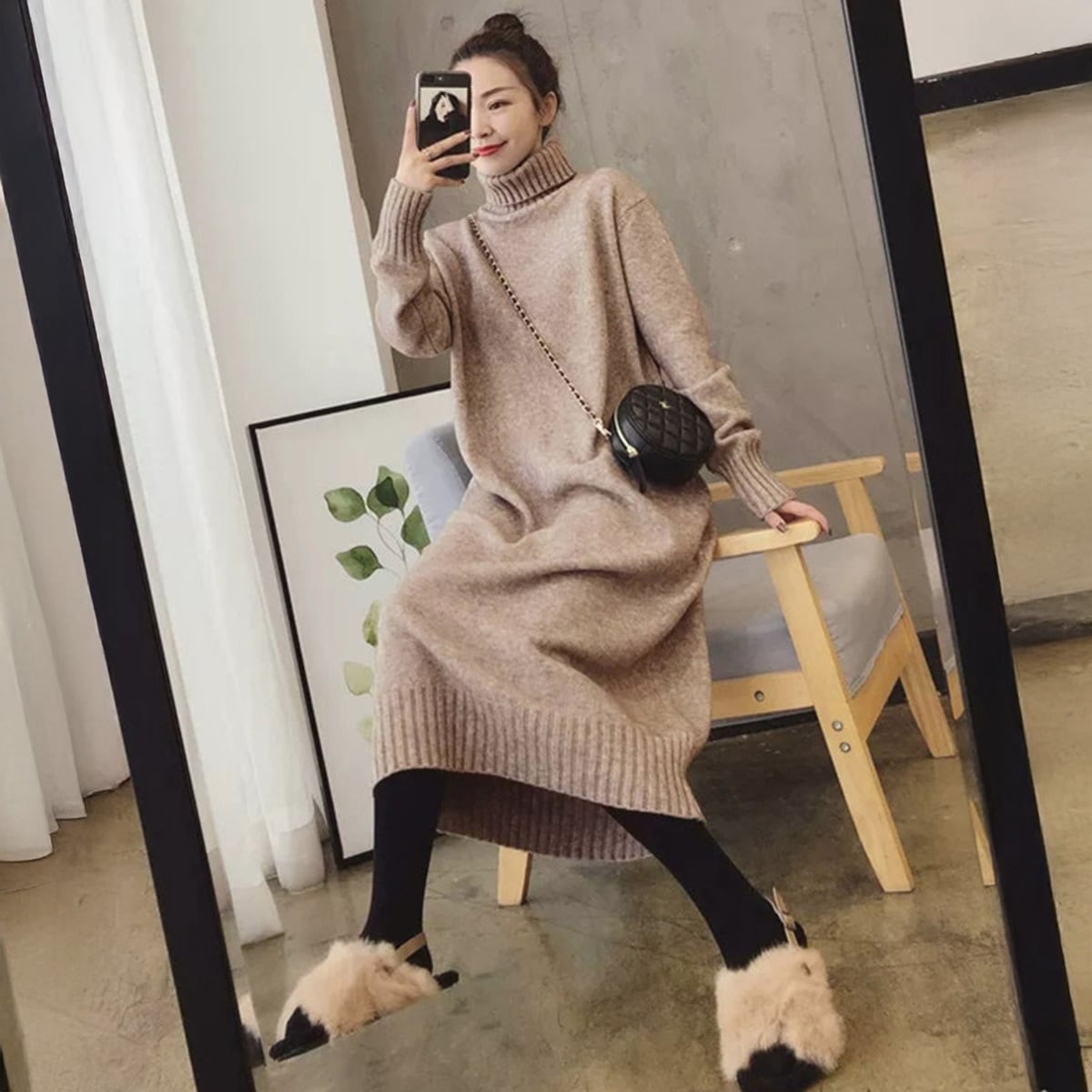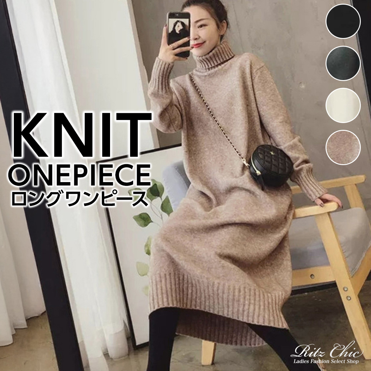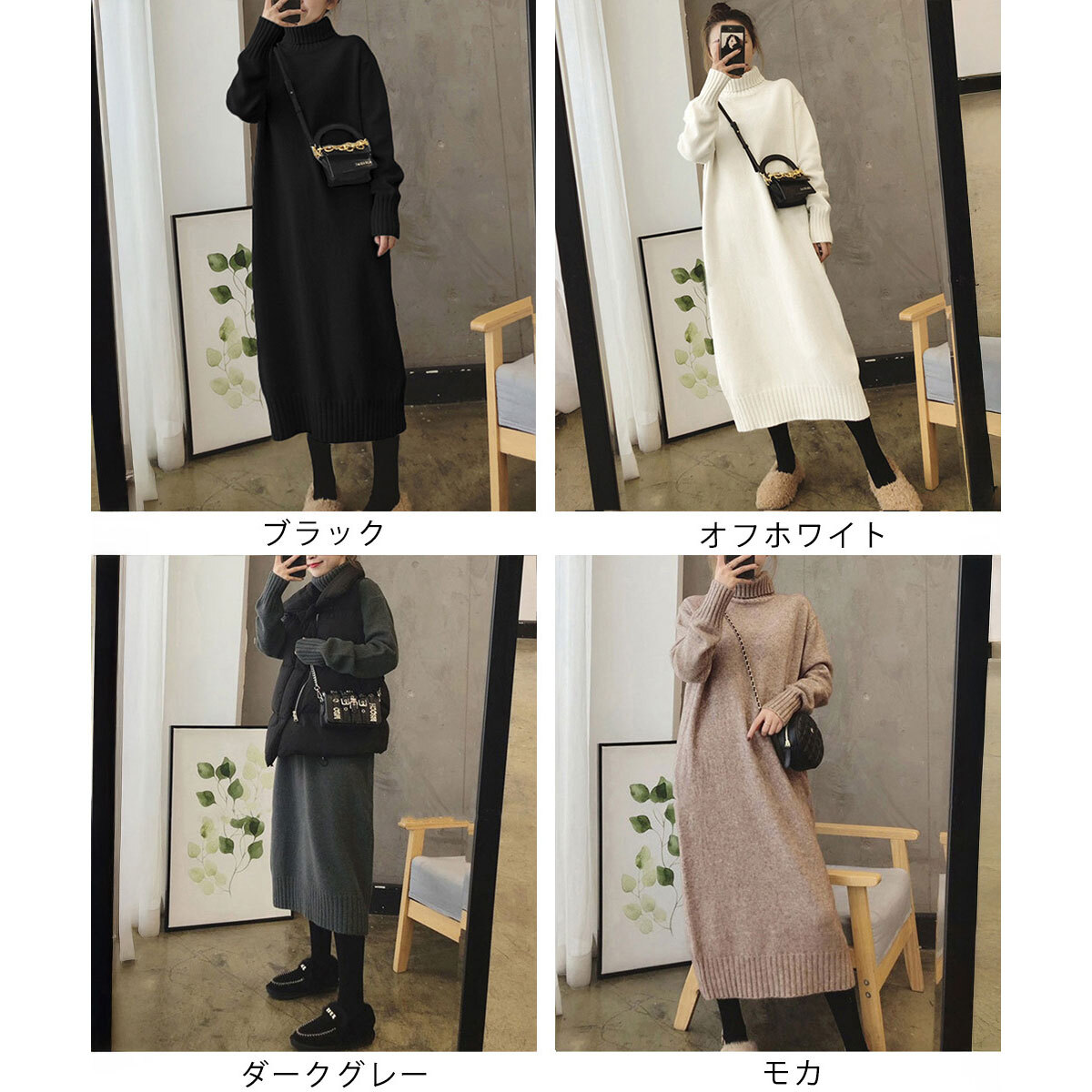 ニットワンピース ロング レディース 秋冬 韓国 タートルネック きれいめ シンプル 大人 カジュアル 厚手 防寒 暖かい セーター ワンピース 大人可愛い 大人女子