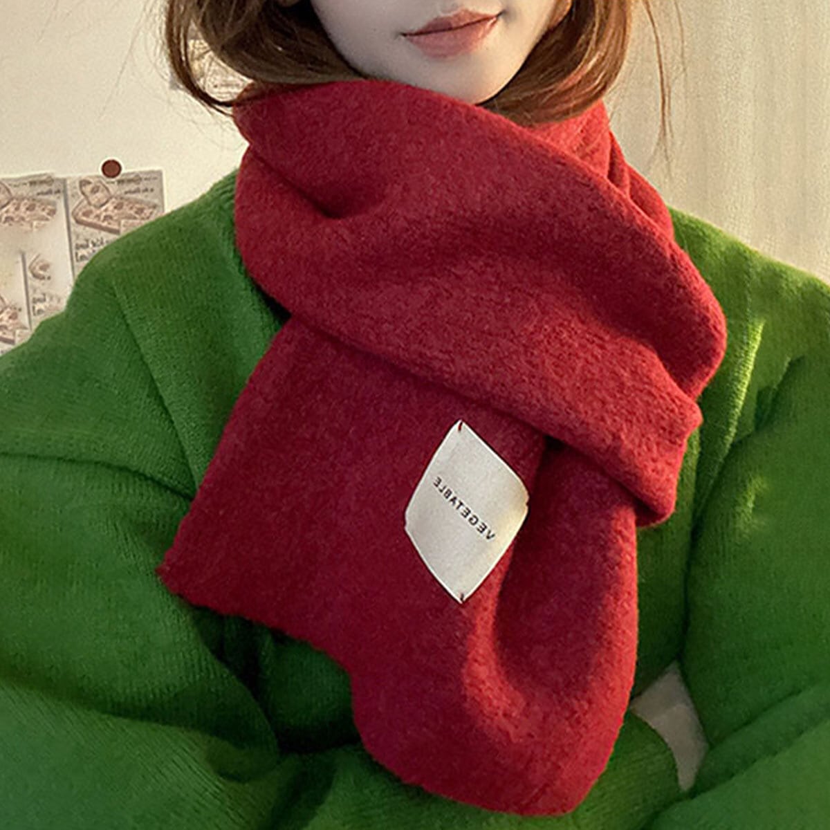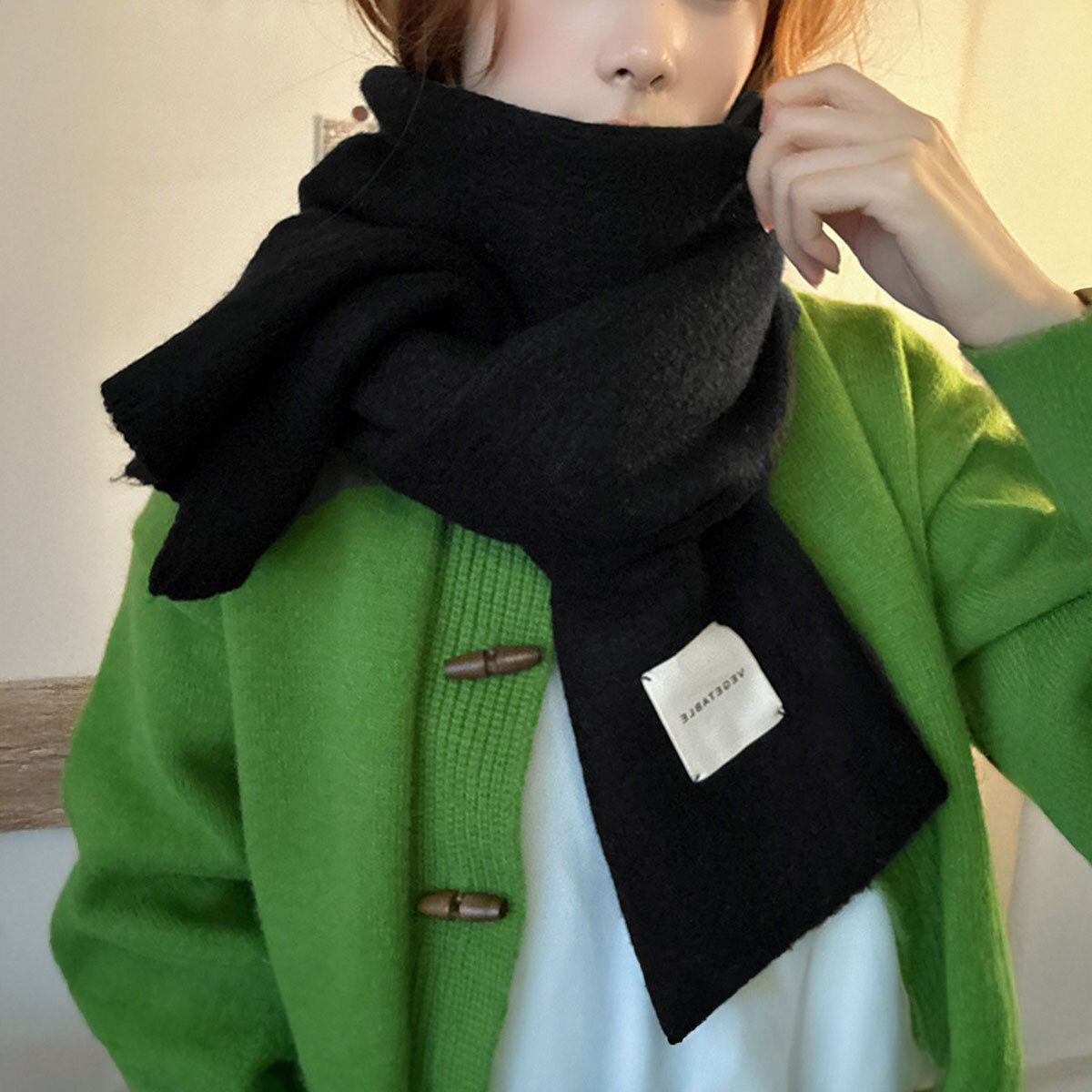 厚みのあるニットがしっかりとした暖かさを提供し、ふわふわとした柔らかい質感は肌に優しく、チクチク感を感じることなく快適にお使いいただけます。