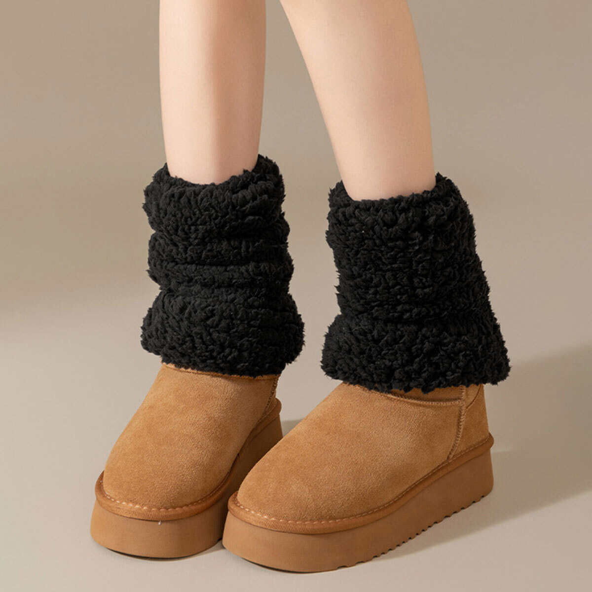 ◇もこもこの質感が魅力のボアレッグウォーマー。
