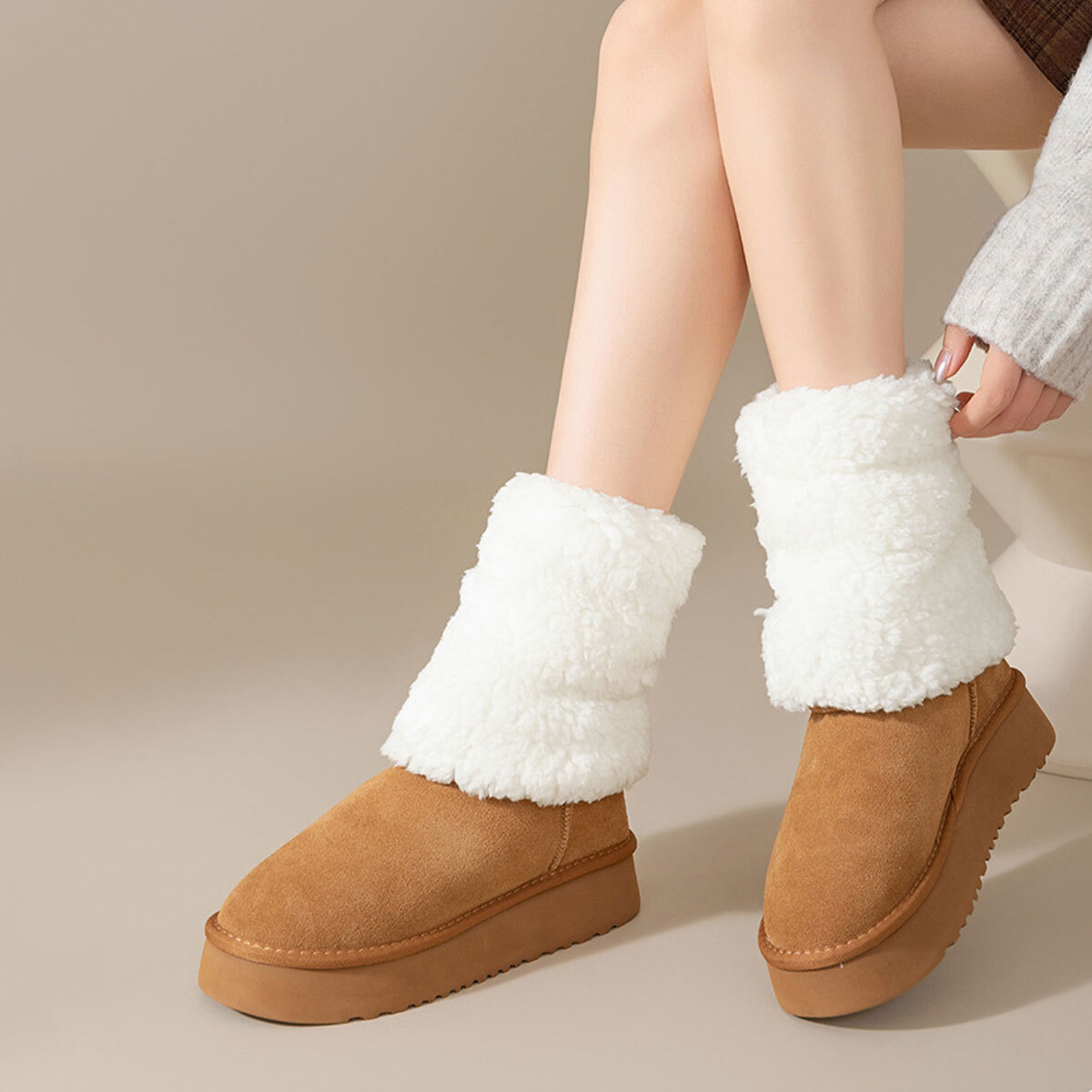 ボリューム感があるので脚の細見え効果にも優れていて、足元をしっかりと防寒しながら、可愛らしいスタイルを演出してくれます。