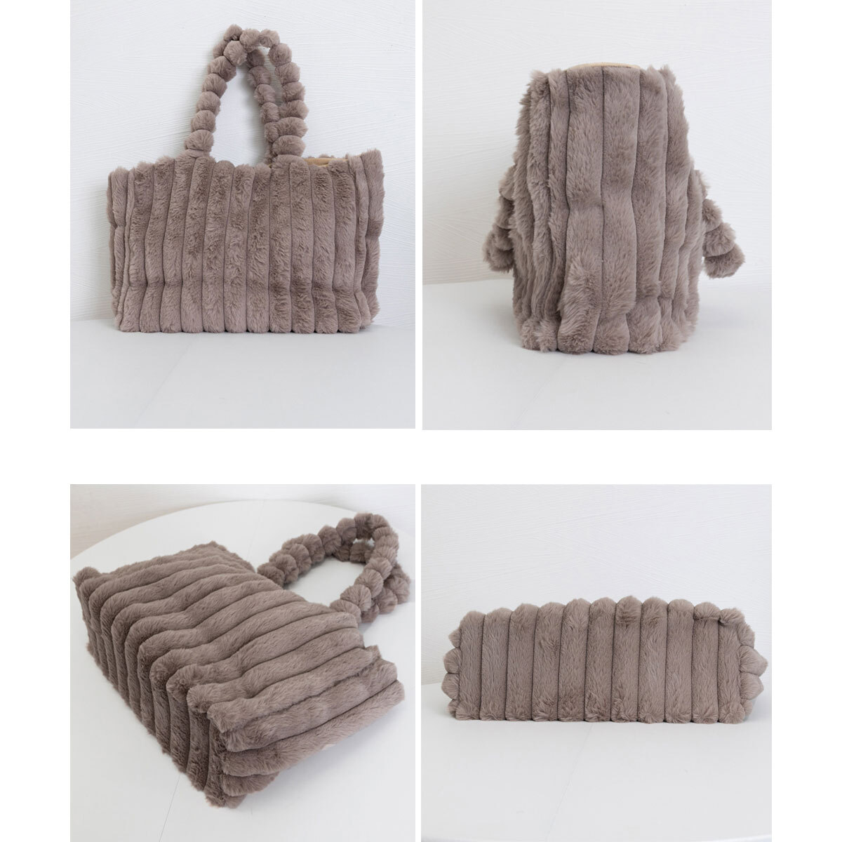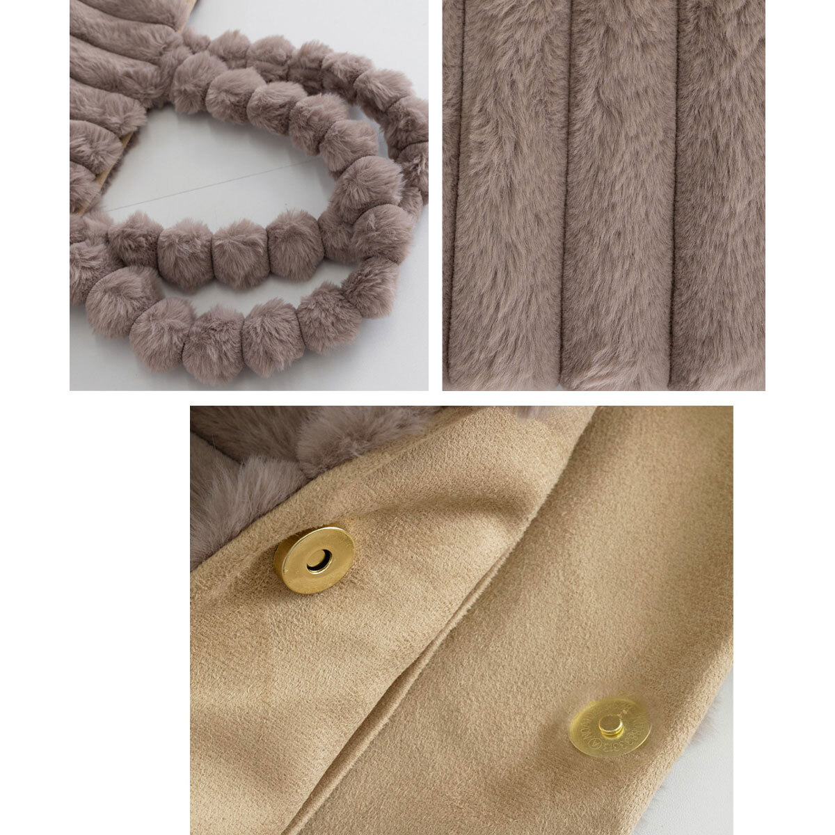 秋冬のスタイルにぴったりな、もこもこしたエコファー素材のトートバッグです。